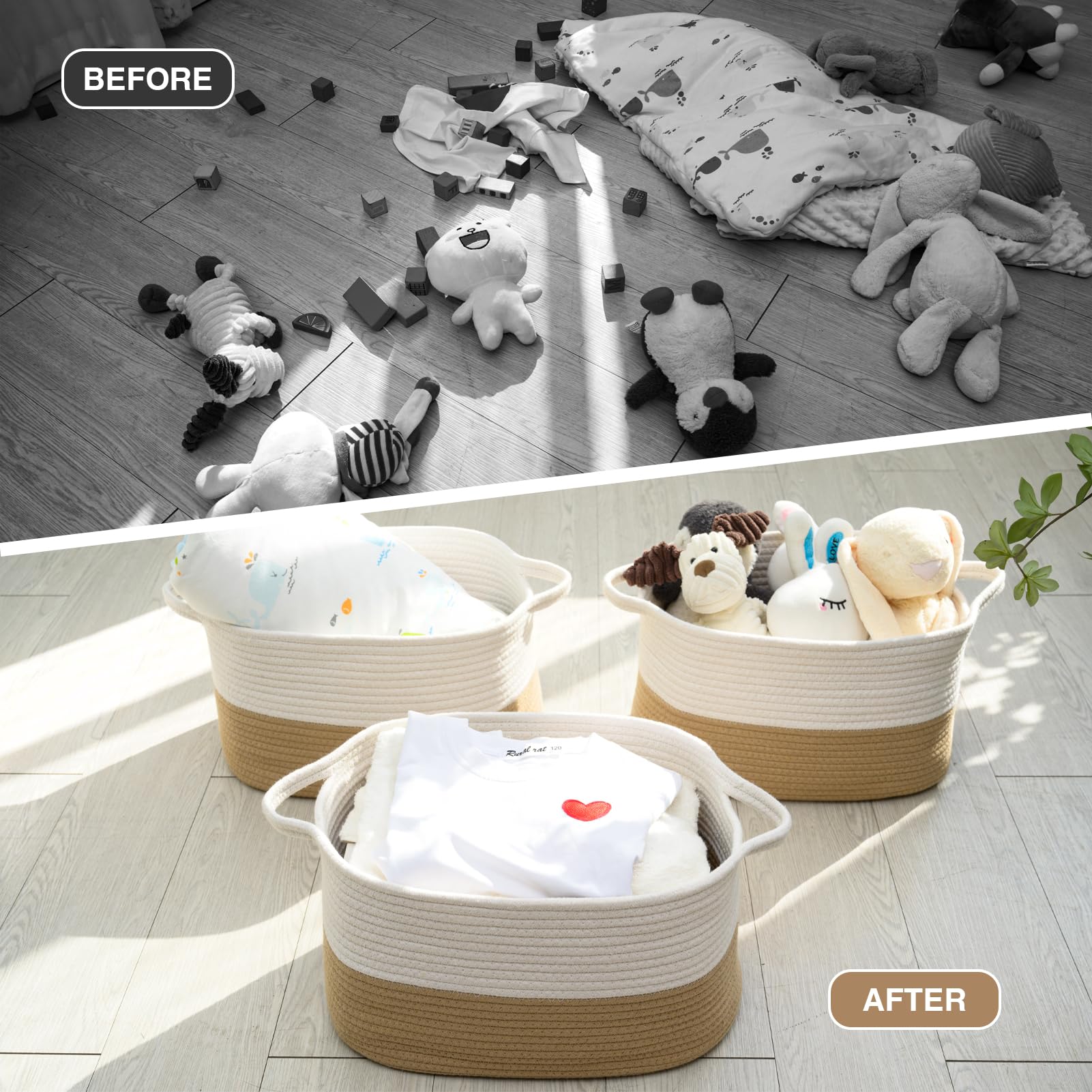- Q: Can this basket be used in multiple rooms? A: Yes, it is versatile and can be used in living rooms, bedrooms, bathrooms, playrooms, and more.