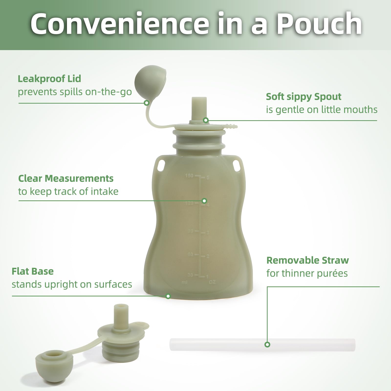 • Q: Are these pouches suitable for self-feeding? A: Yes, the pouches feature a suction nozzle and straw that help babies control the flow of food, making self-feeding easier.