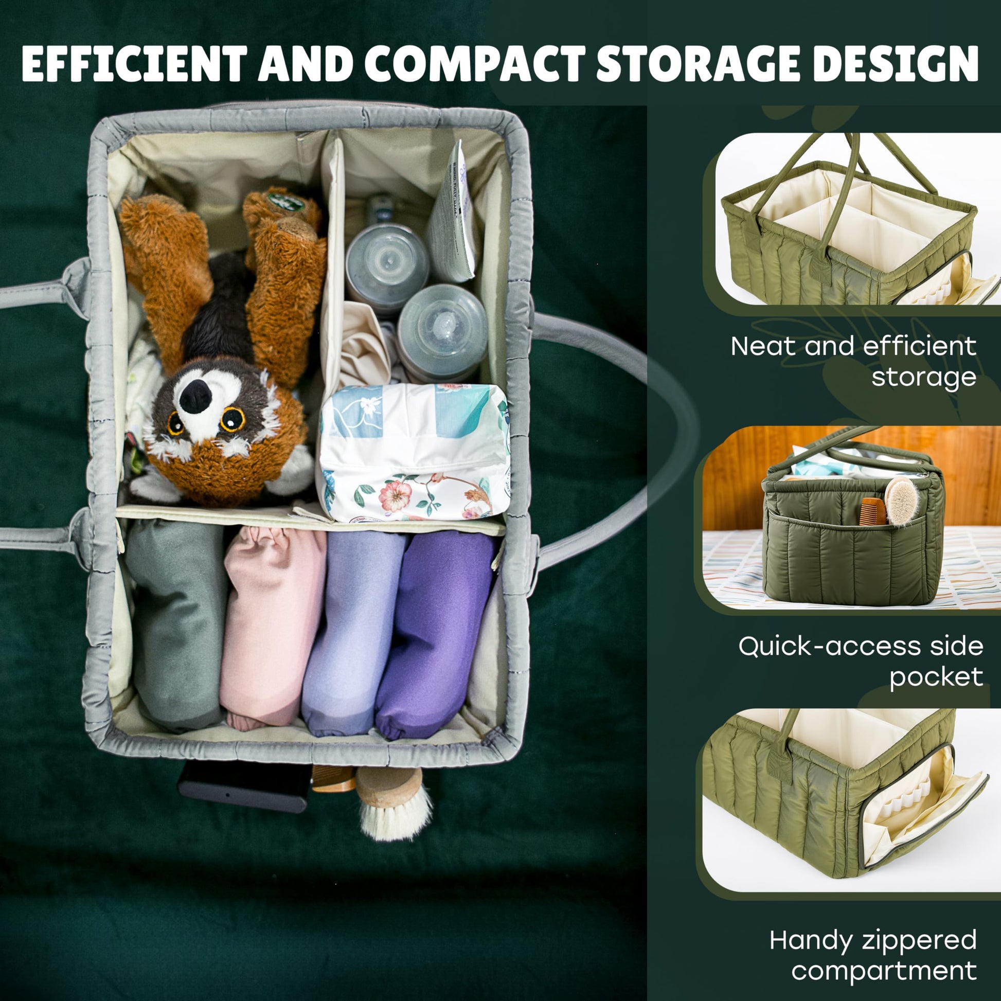 - Q: Can the caddy be used for purposes other than storing diapers? A: Absolutely! The diaper caddy is versatile and can also be used as a toy storage bin, nursing station, or general organizer for your baby's supplies.