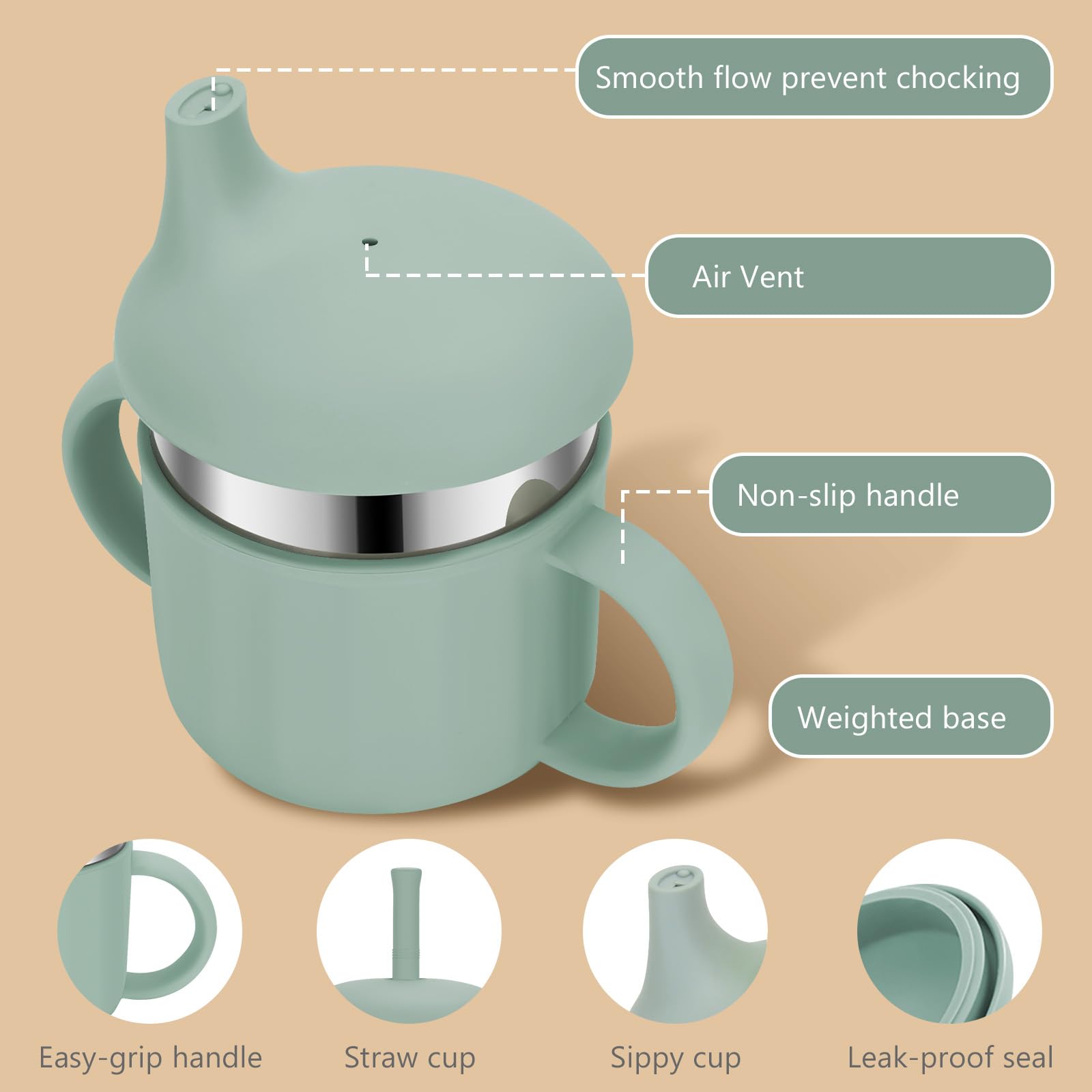 - Q: What materials are used in the construction of these cups? A: The cups are constructed from stainless steel and silicone, providing durability and safety for your child.