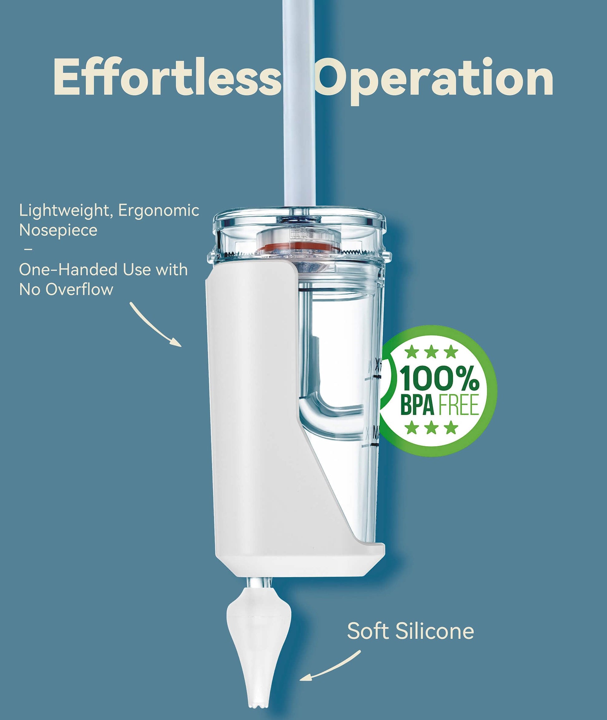 - Q: How does the FamiBaby aspirator prevent mucus overflow? A: The FamiBaby aspirator features a unique nosepiece design that helps prevent mucus overflow, allowing for efficient single-handed operation.