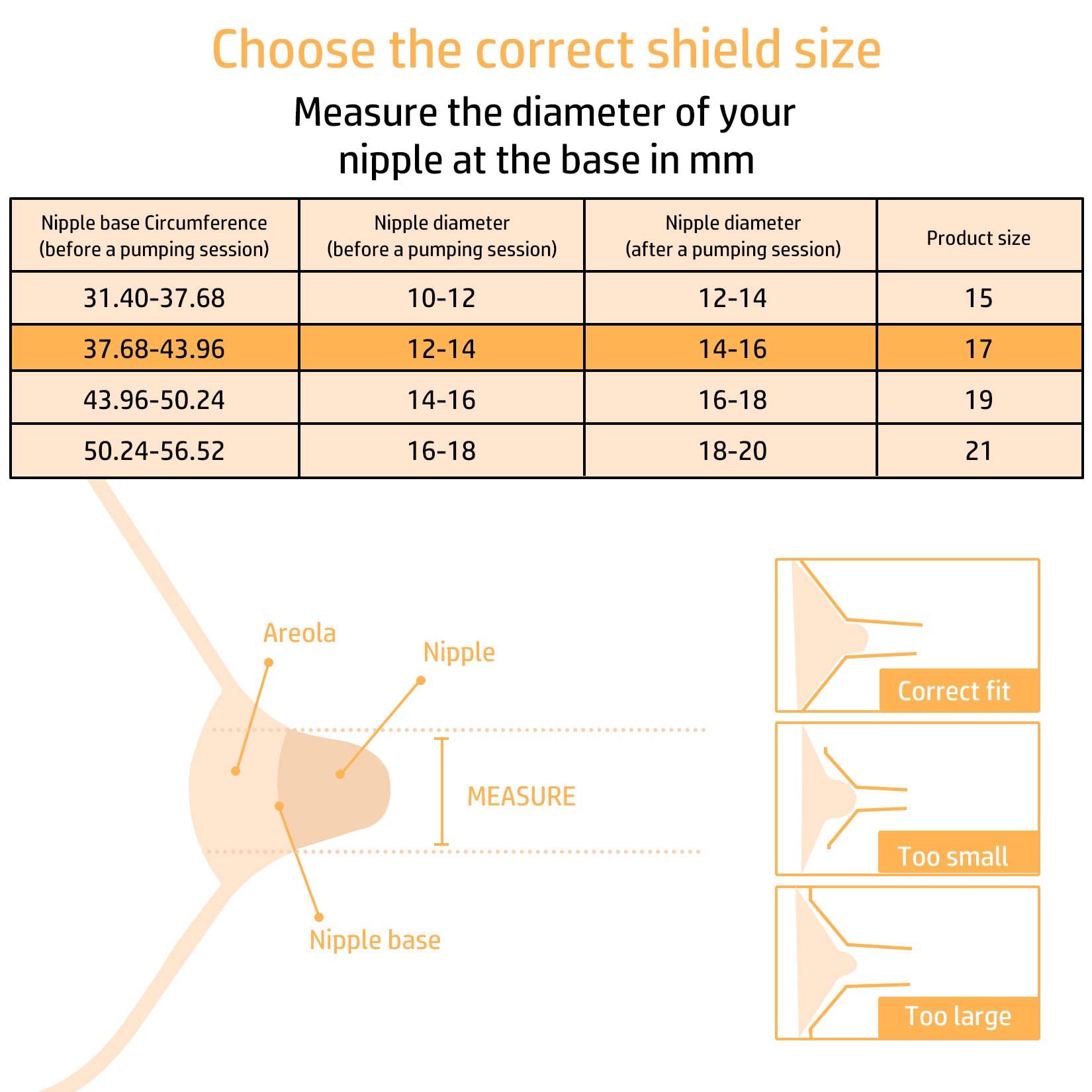 - Q: What is the size of the flange insert? A: The flange insert size is 17mm, designed to reduce the standard 24mm breast shields for a more comfortable pumping experience.