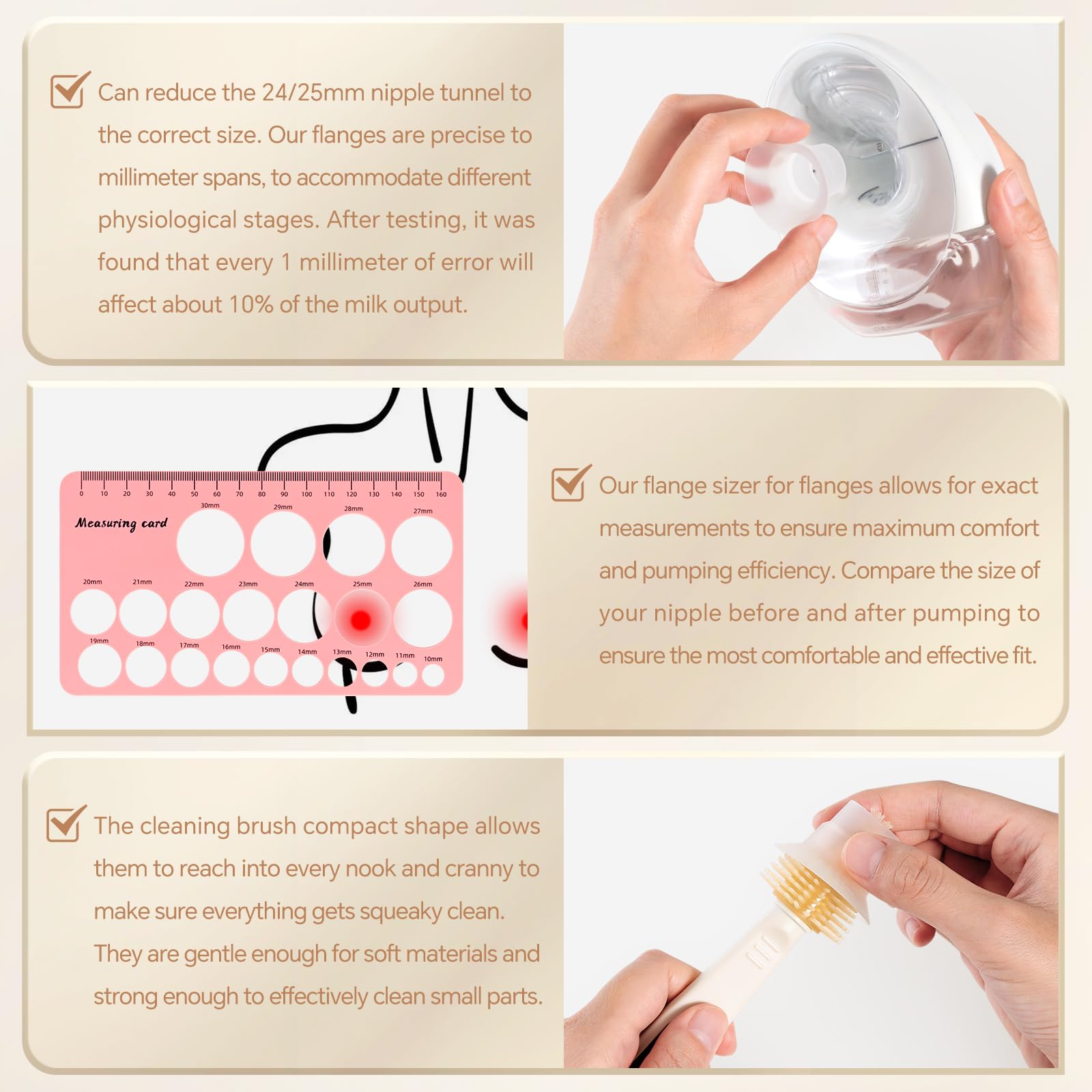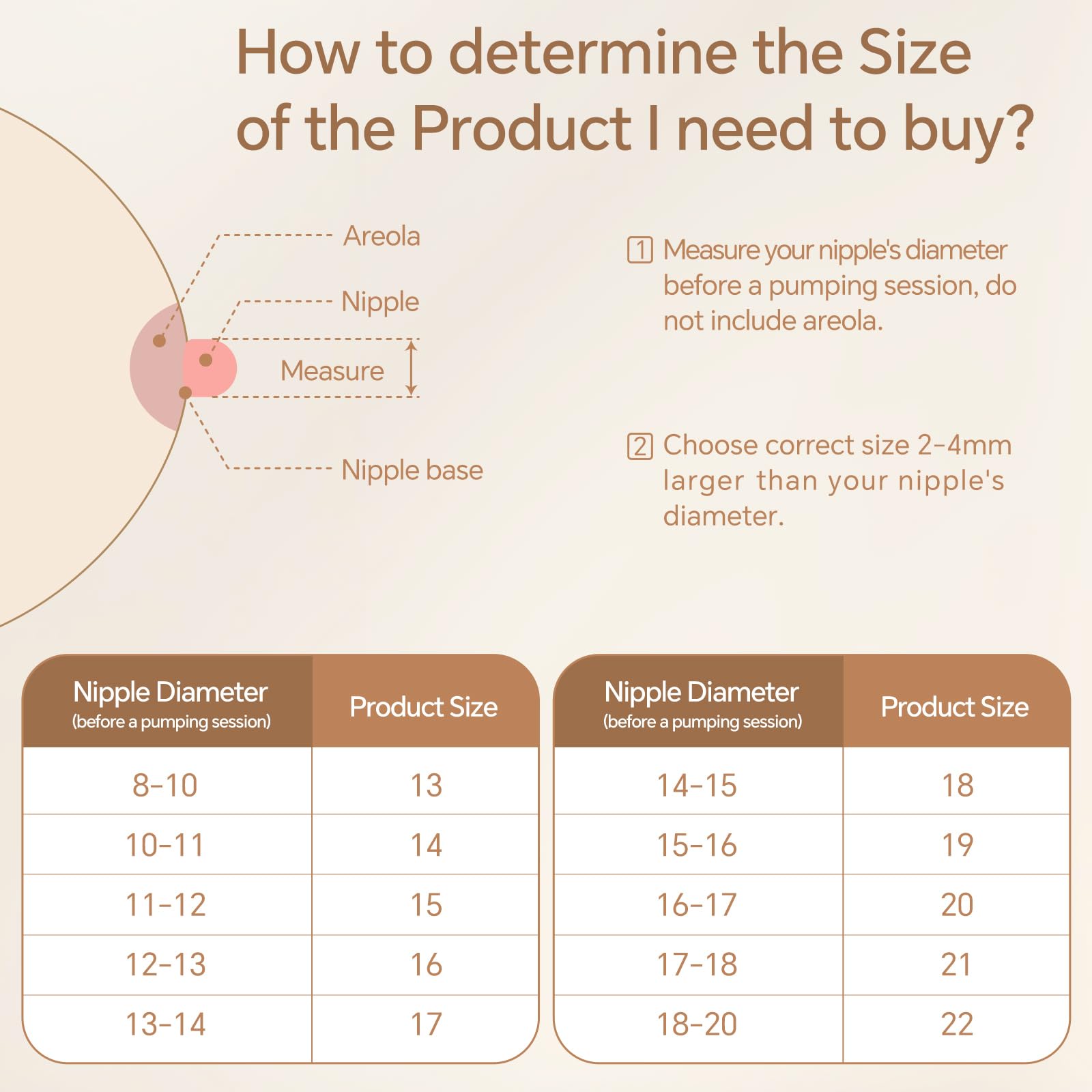 - Q: How do I know which size flange insert to choose? A: You can use the included nipple measurement card to assess your size before and after pumping. It is crucial to ensure the right fit for optimal milk output.