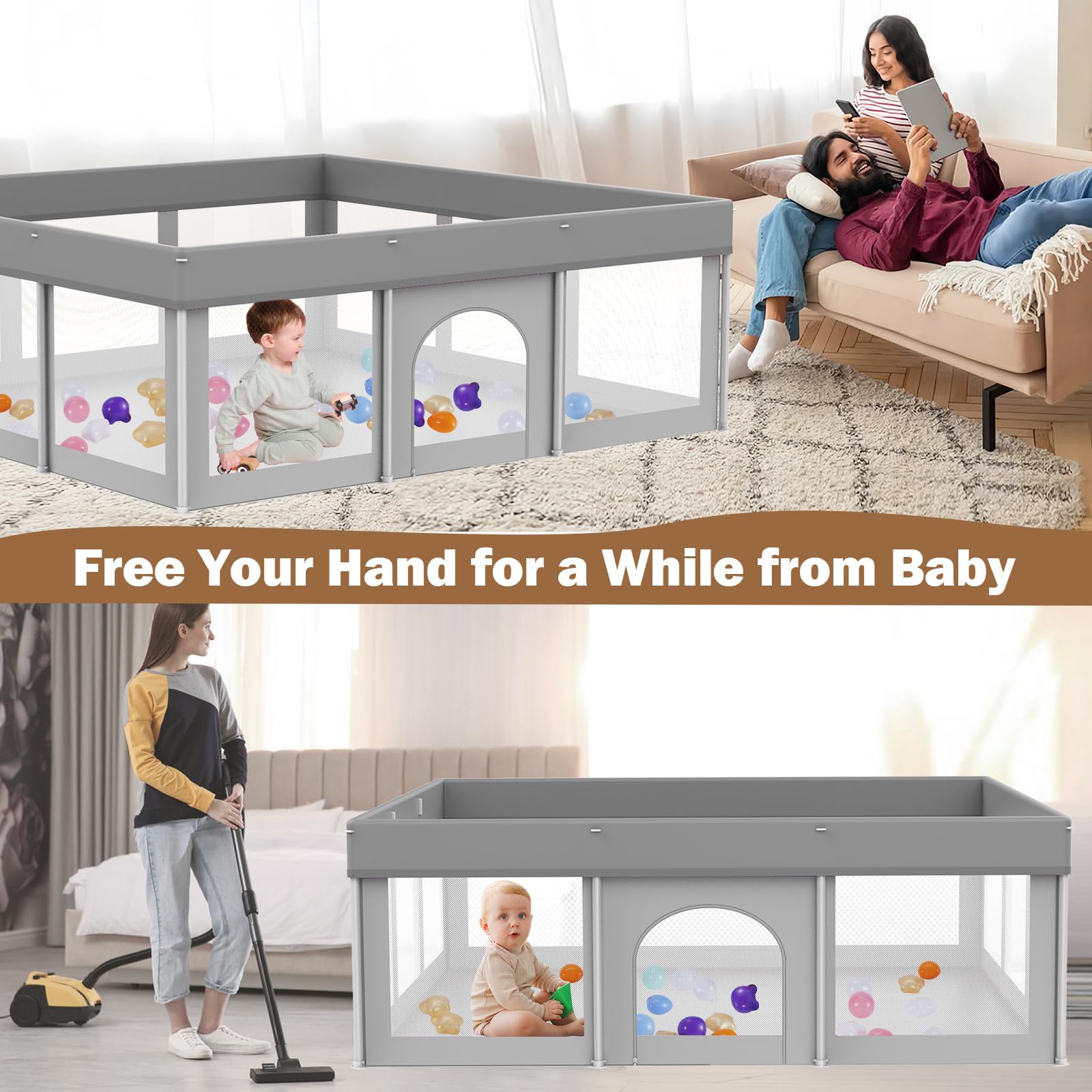 - Q: Does the playpen come with any additional items? A: Yes, the playpen comes with one hundred fifty ocean balls, adding extra fun and stimulation for your child during playtime.