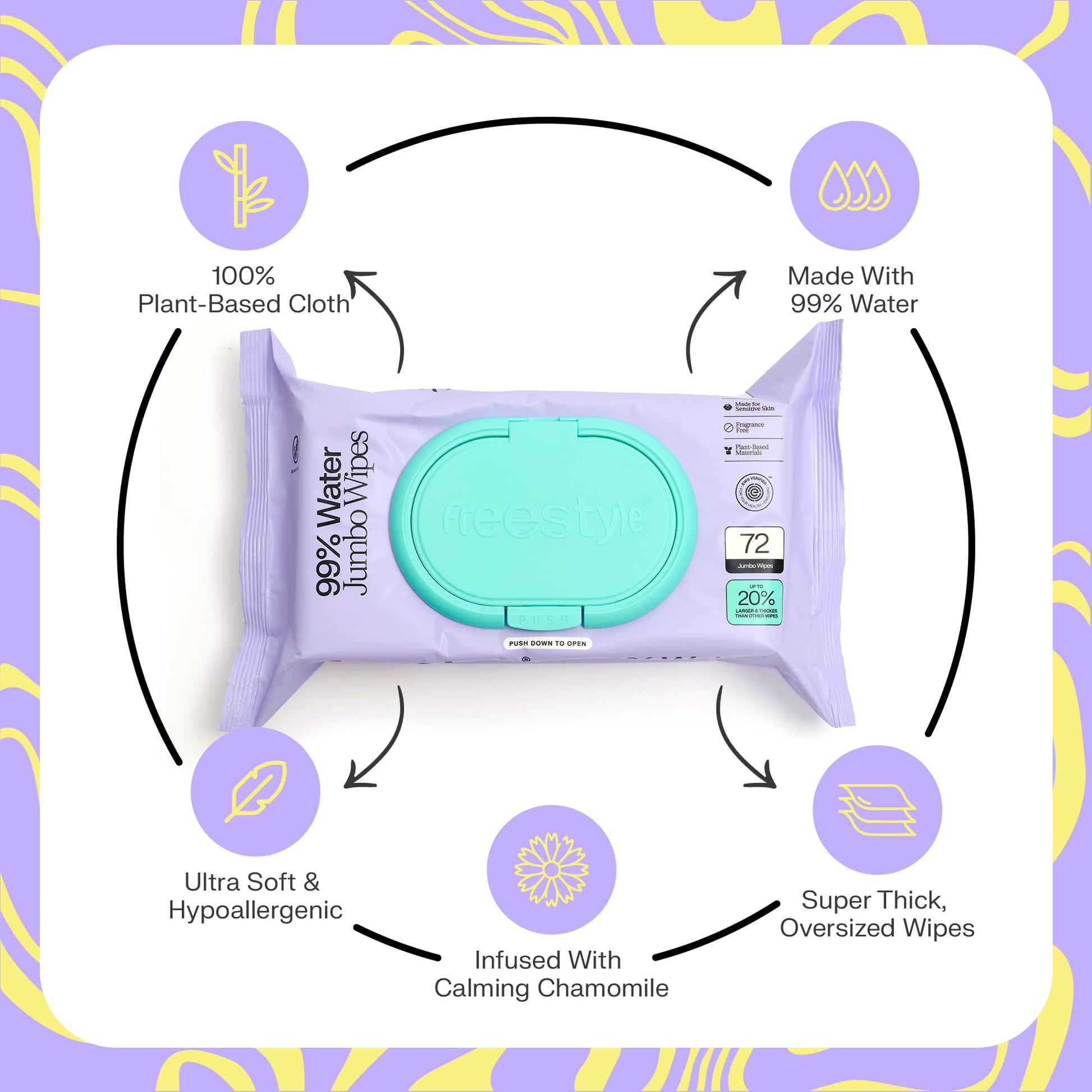 - Q: What are Freestyle Soft Jumbo Baby Wipes made from? A: Freestyle Soft Jumbo Baby Wipes are made from plant-based materials, crafted to be soft and gentle on sensitive skin.