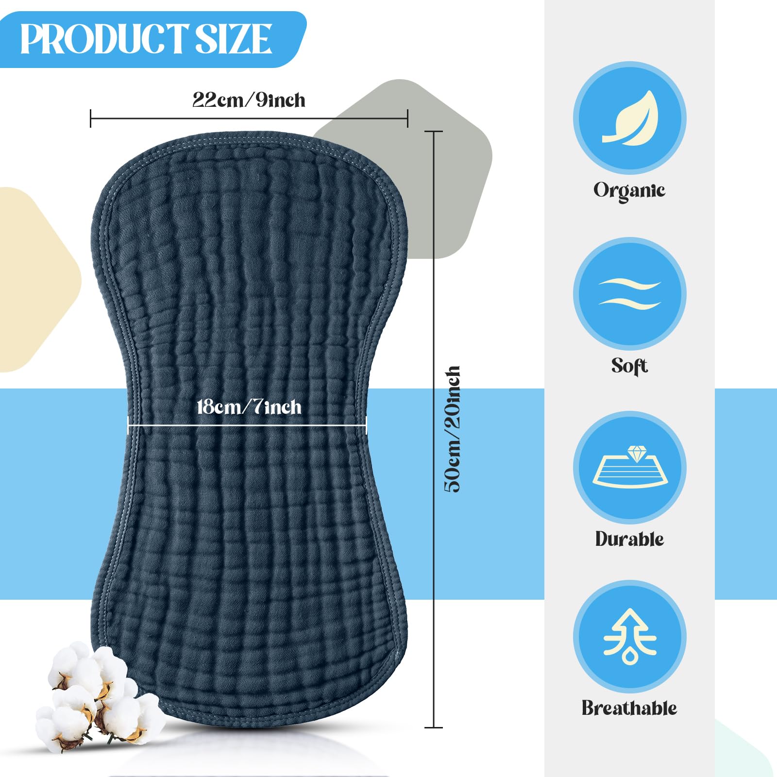 • Q: How thick are the burp cloths? A: The burp cloths are designed with 6 layers, providing excellent absorbency for spit-up and drool.