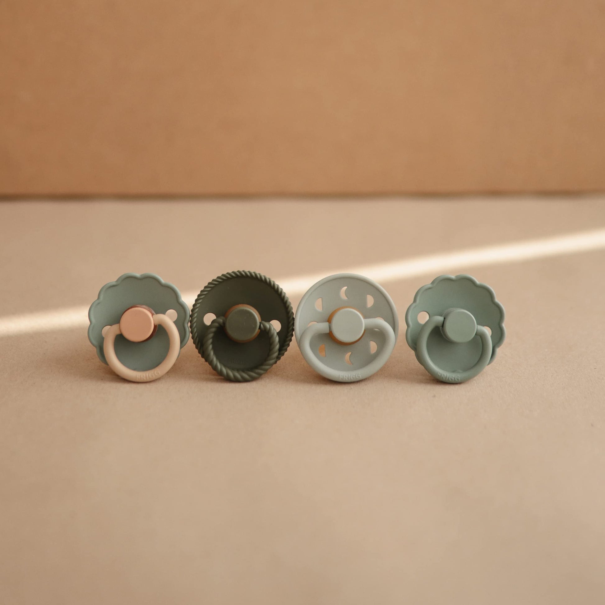 Frigg Daisy Natural Rubber Baby Pacifier | Made In Denmark | Bpa-Free (Dusty Rose/Lily Pad, 6-18 Months) 2-Pack