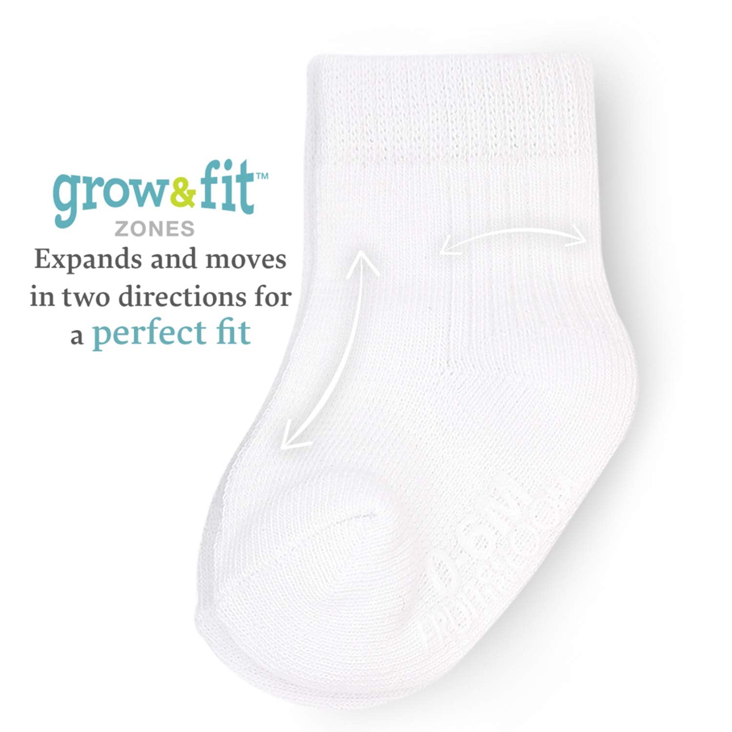 - Q: Do these socks have any special features for infants? A: Yes, they include grow and fit zones for extra stretch, non-skid grippers for traction, and an elastic rib knit cuff for easy wear.