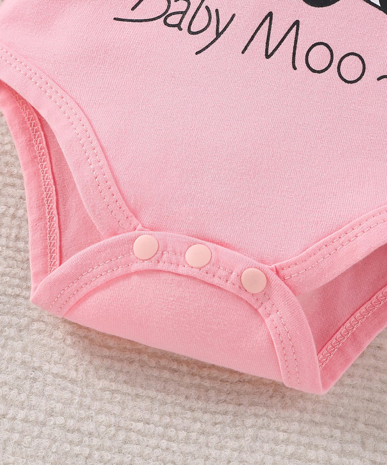 - Q: What is the design theme of the outfit? A: The outfit features an adorable cow-themed 'Baby Moo' print that adds a fun and charming touch.