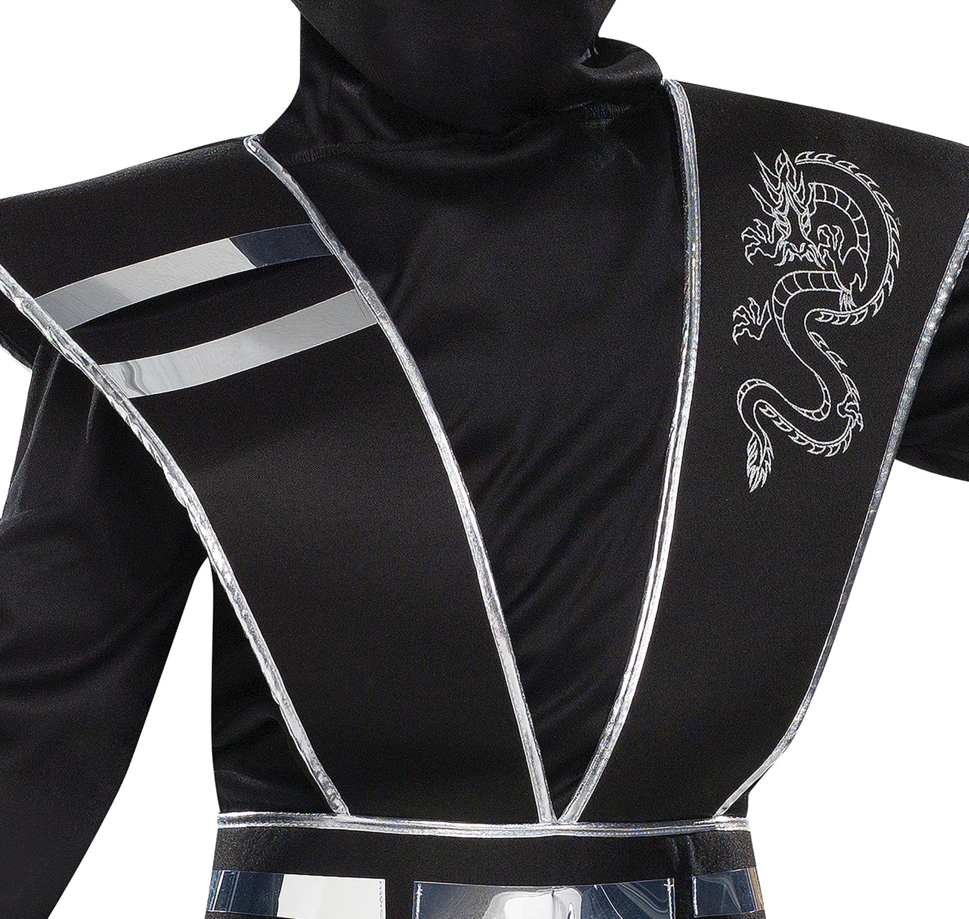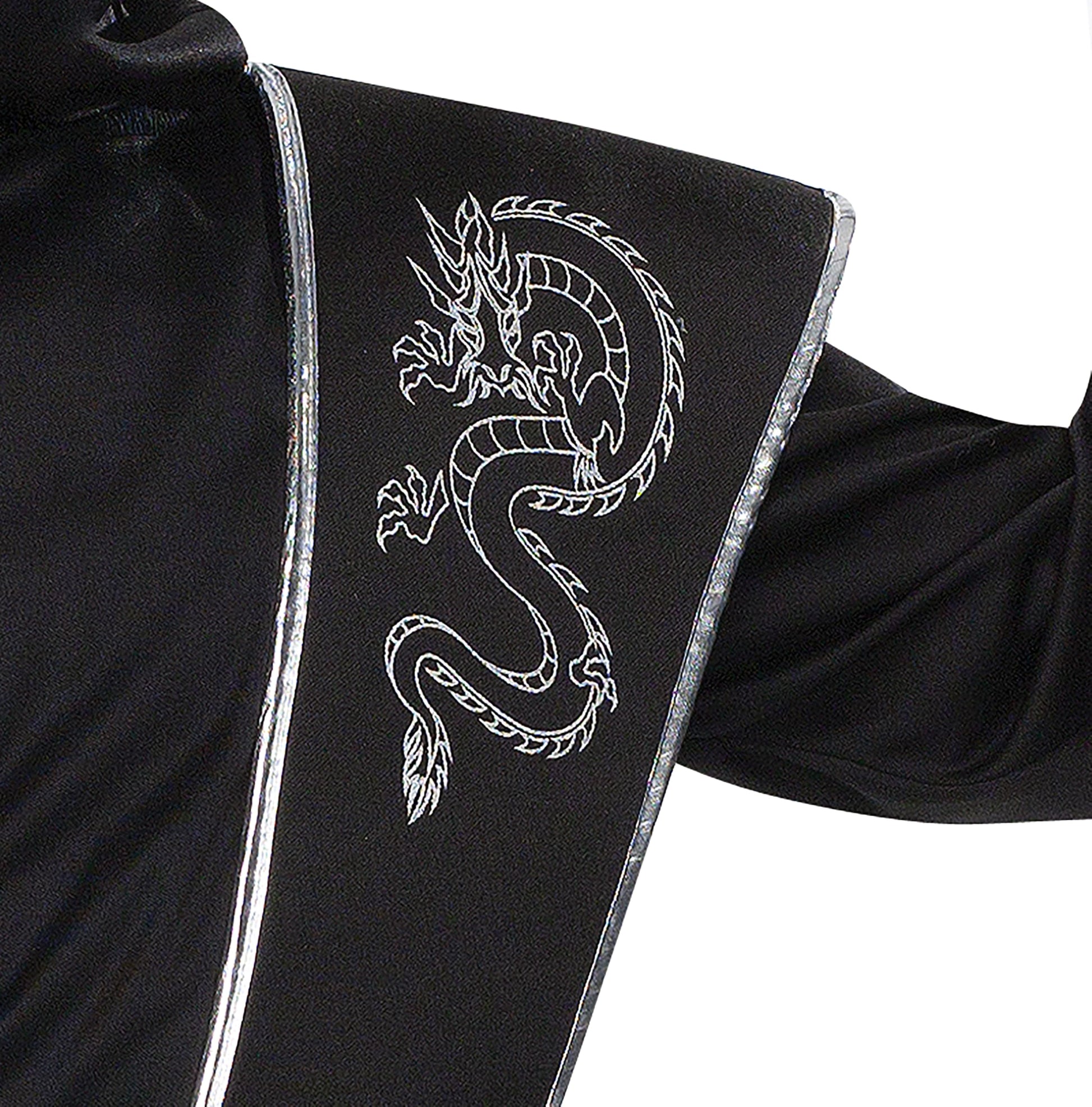 - Q: Does the costume have any decorative elements? A: Yes, the costume features a printed dragon design on one shoulder, adding to its visual appeal.