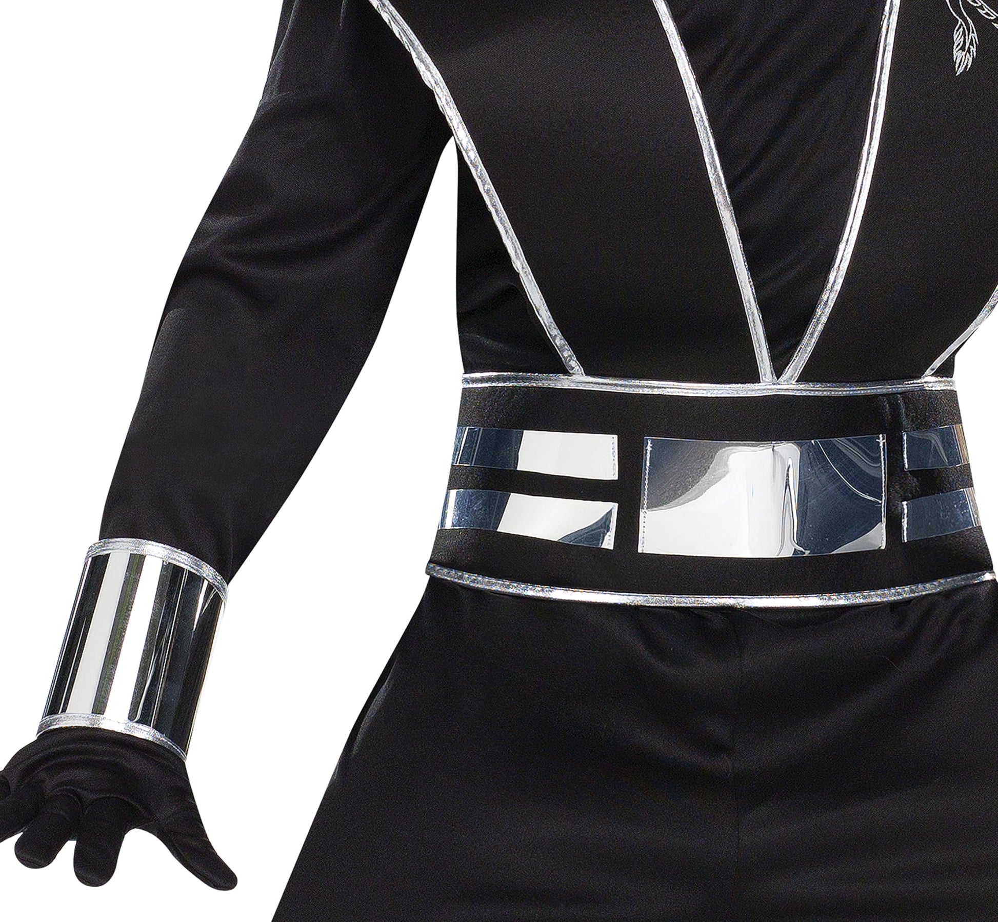 - Q: Does the costume include accessories? A: Yes, the costume includes a tunic with a belt, ankle guards, wrist guards, a hood with a mirror mask, and gloves.