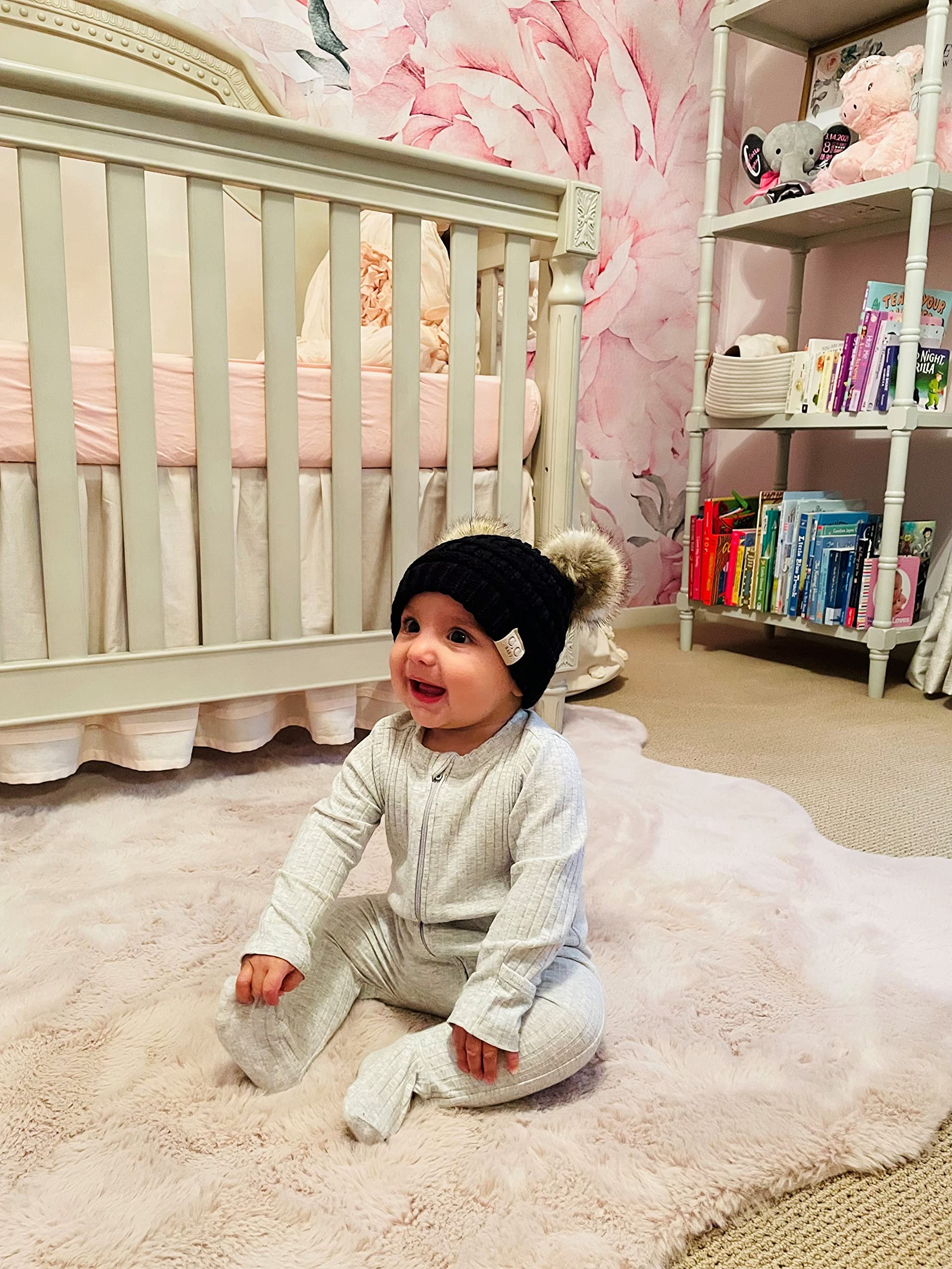 - Q: What styles or colors are available for this beanie? A: The Funky Junque Baby/Infant Double Pom Beanie is available in black with faux fur pom accents, adding a stylish touch to any baby's outfit.
