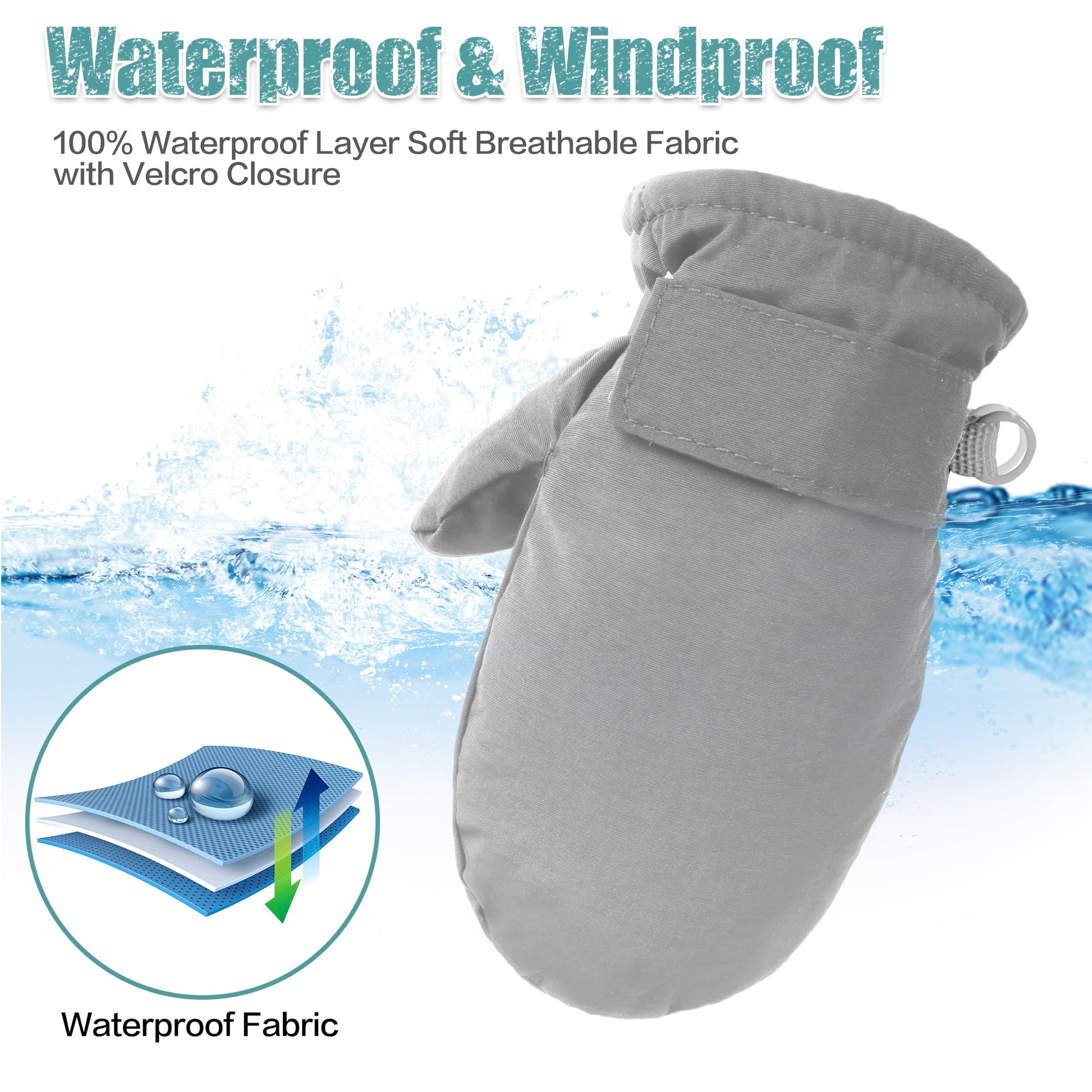 Fynnsure Toddler Mittens Baby Waterproof Snow Gloves Kids Ski Snow Gloves Cold Weather Mittens For Boys Girls Solid Gray 2-4 Yea