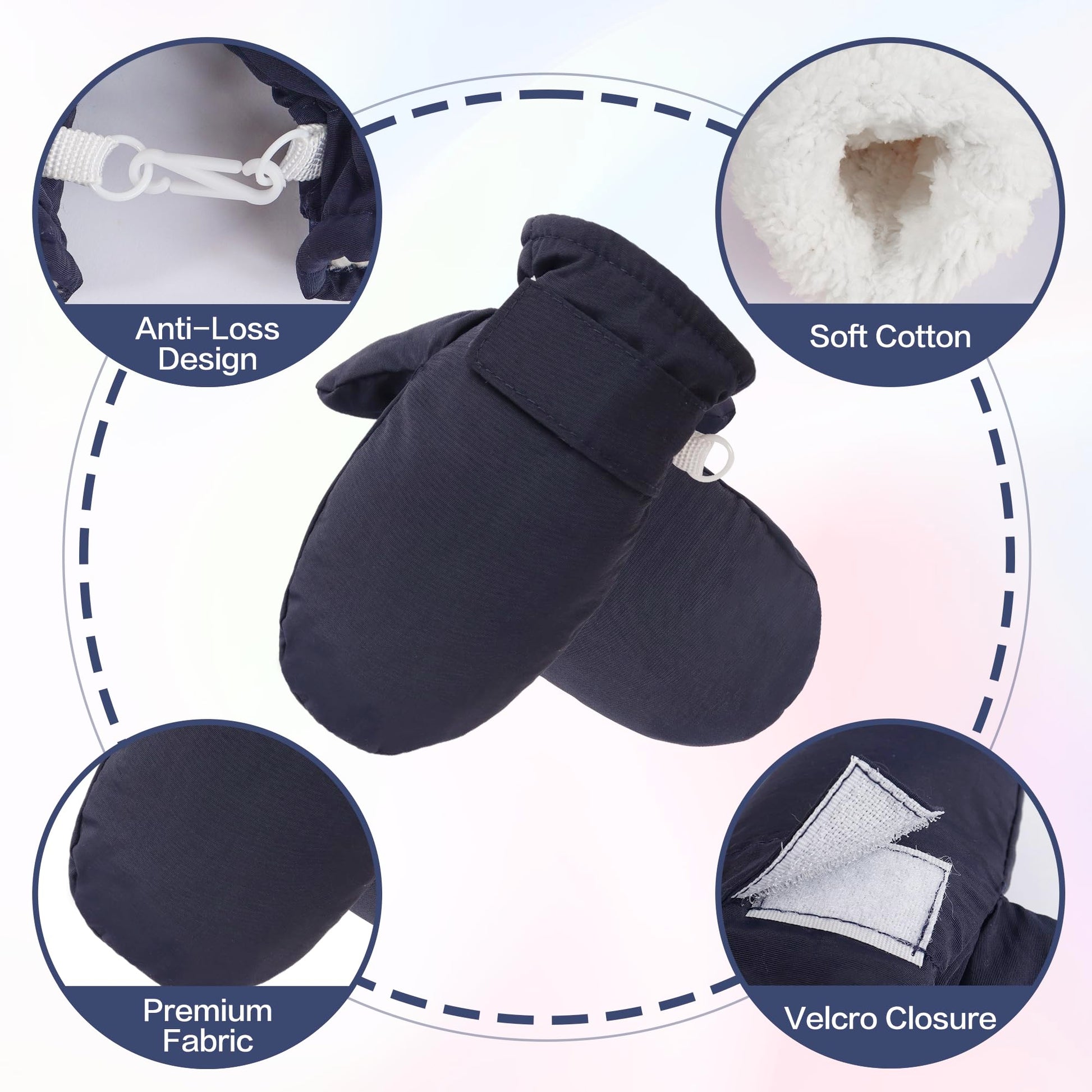 - Q: Are the mittens easy to put on and take off? A: Yes, the mittens include a hook and loop wrist lock design that allows for a secure fit while being easy for parents to put on and remove.