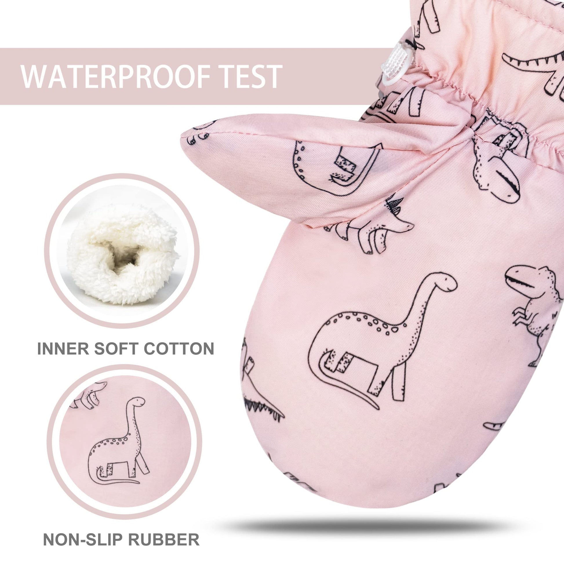 - Q: What colors and patterns are available for the mittens? A: The mittens come in bright colors and feature cute dinosaur patterns, making them appealing to toddlers.