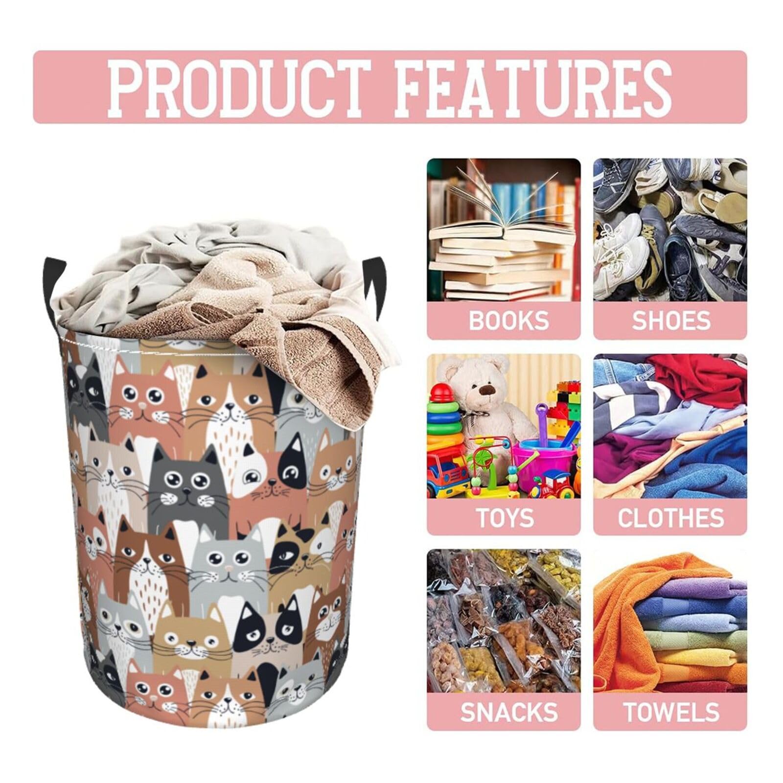 Gbuzozie Funny Cartoon Cats Round Laundry Hamper Storage Basket Toys Clothes Organizer Bin For Home Bathroom Bedroom Dorm Nurser