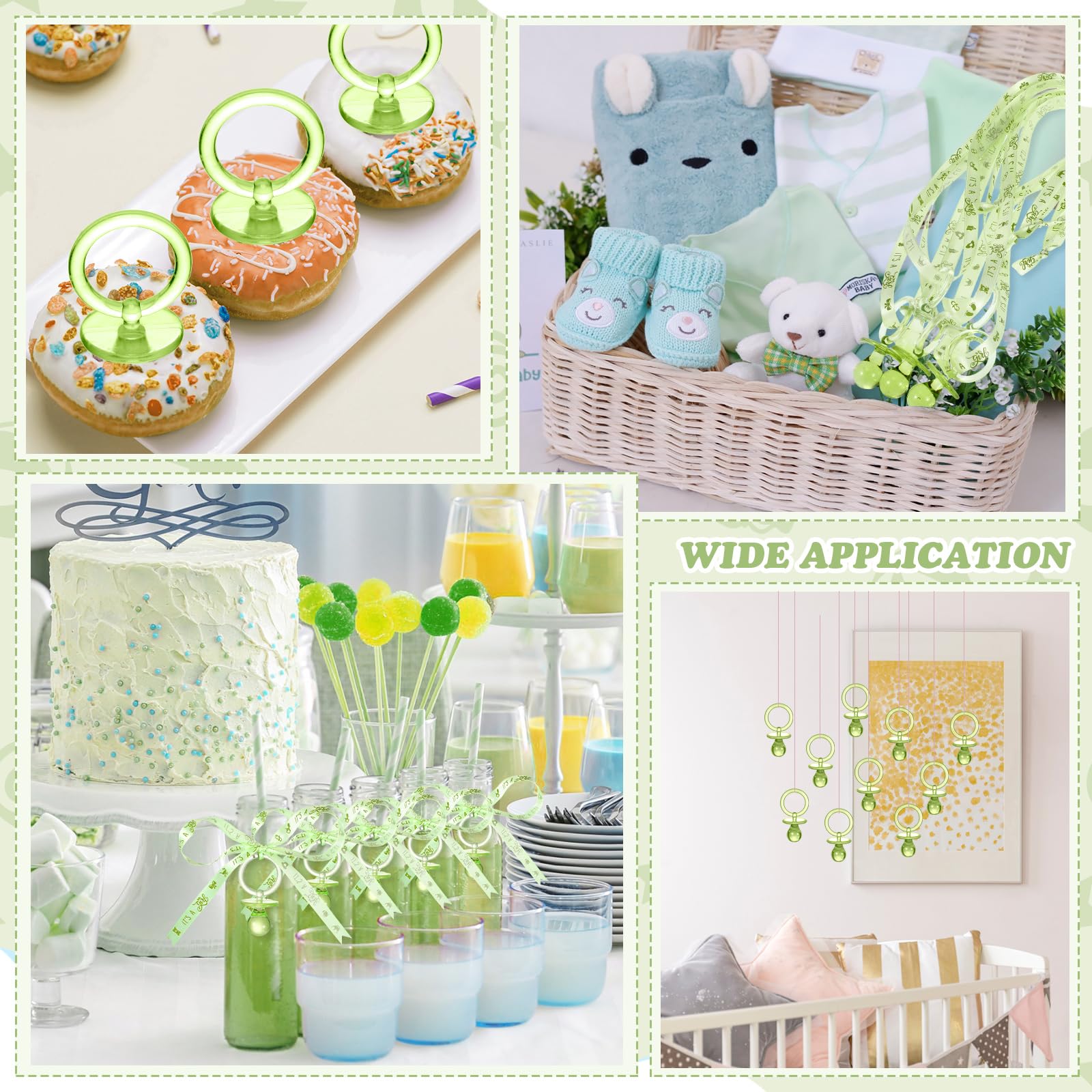 - Q: Can these be used as gifts? A: Absolutely! The pacifier necklaces can be given as gifts or souvenirs for guests at baby showers, birthdays, and other celebrations.