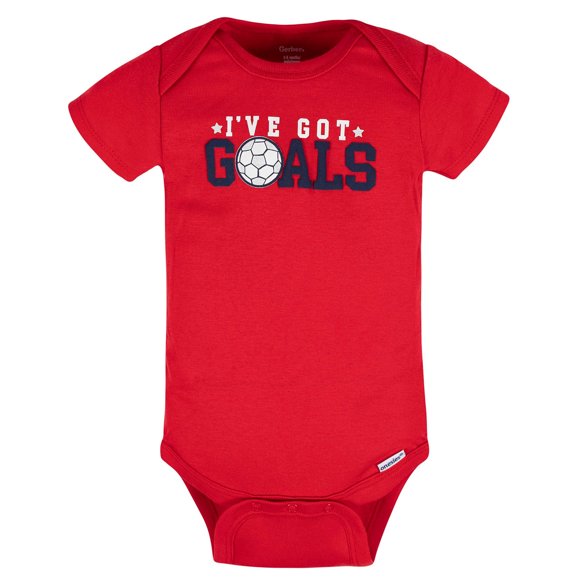 - Q: What sizes are available for the Gerber Baby Boy's Onesies? A: The Gerber Baby Boy's 8-Pack Short Sleeve Onesies are available in sizes ranging from 3-6 months.