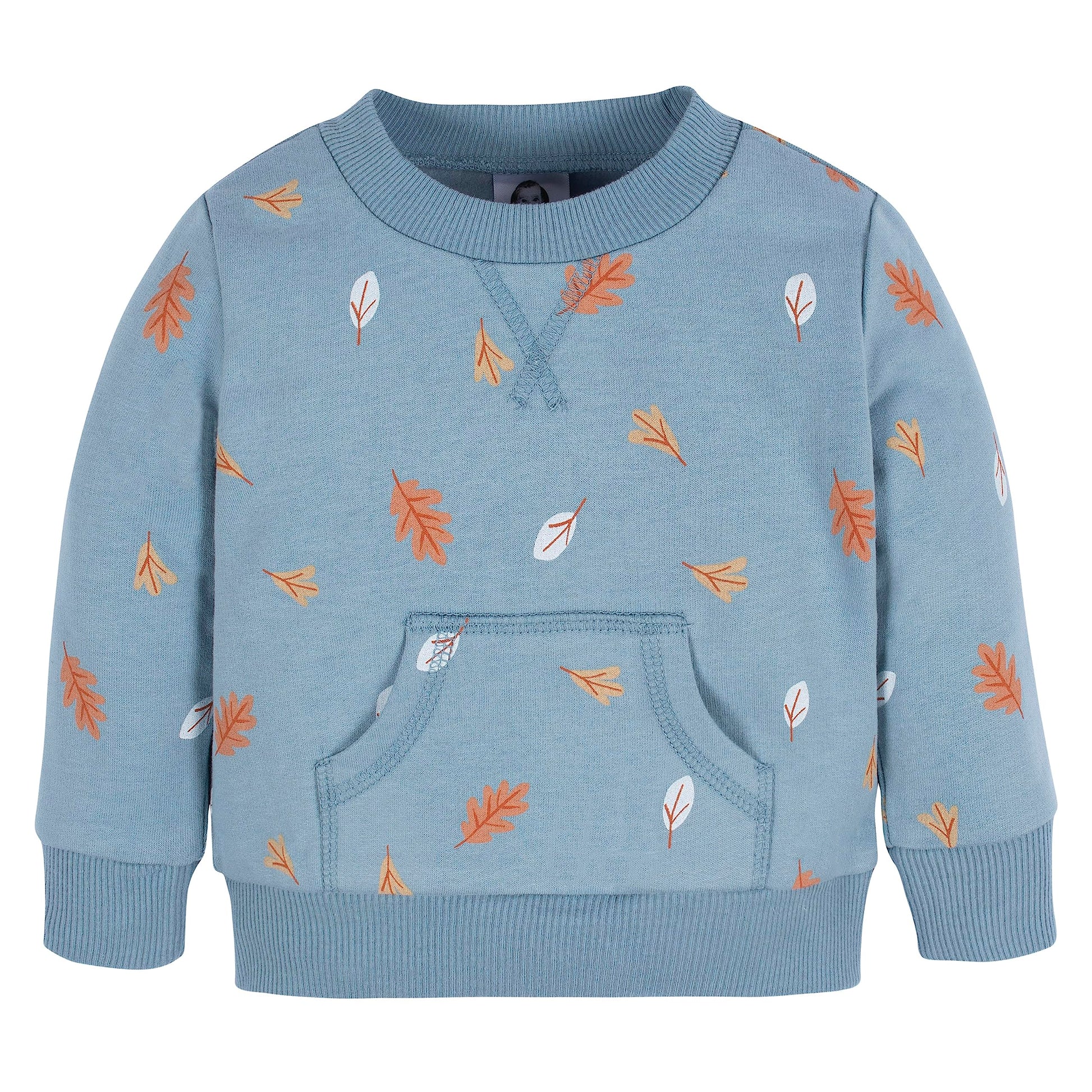 Gerber Baby Boys Toddler 2-Piece Fleece Sweatshirt And Jogger Set, Blue Leaves, 4T