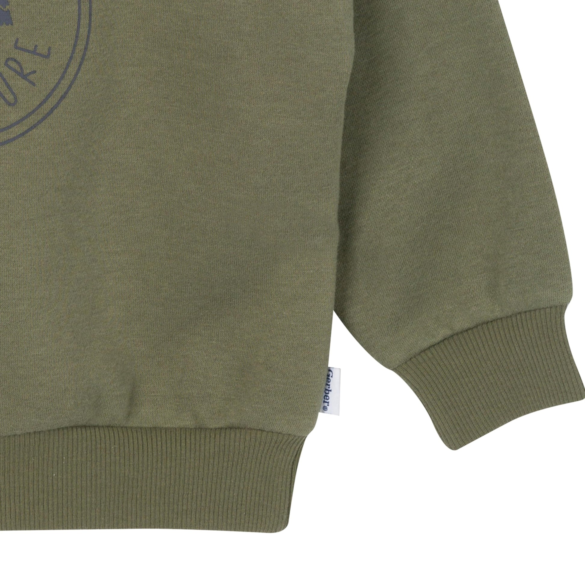 - Q: What is the material of the Gerber Baby Boys Toddler 2-Piece Fleece Sweatshirt and Jogger Set? A: The outfit is made from super soft fleece material, designed for comfort and warmth.