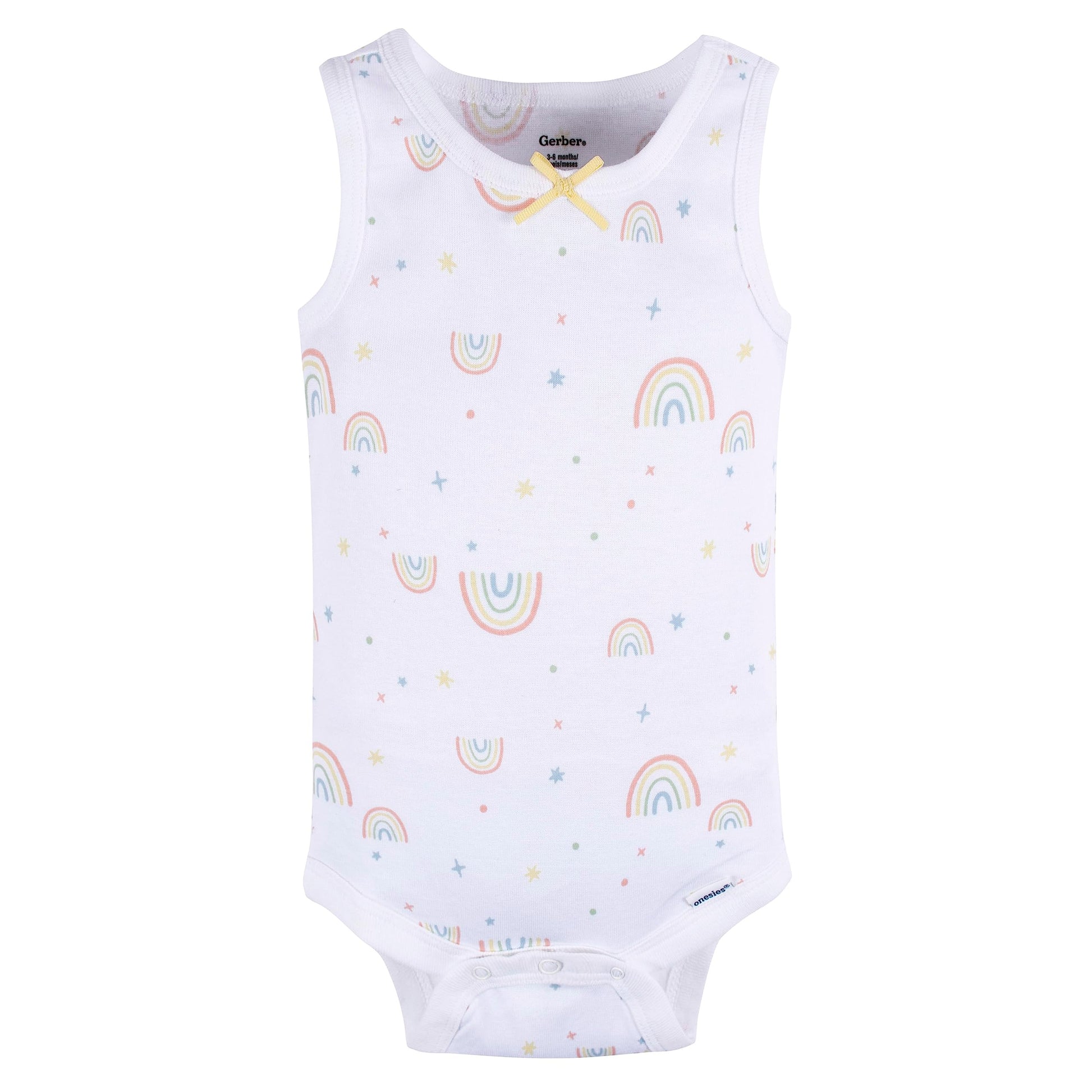 - Q: What materials are the Gerber Baby Girls Multi-Pack Sleeveless Onesies made from? A: The Gerber Baby Girls Multi-Pack Sleeveless Onesies are made from cotton, which is gentle on sensitive skin.