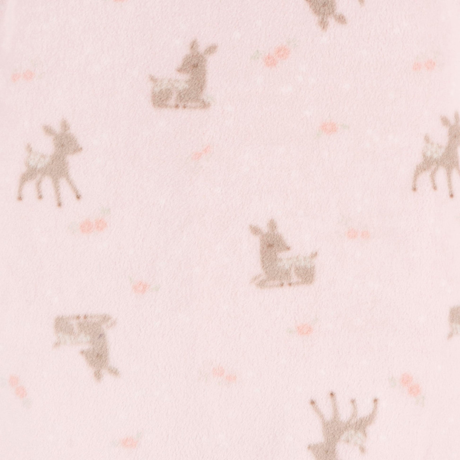 - Q: What are the main features of the Gerber Toddler Baby Girls Flame Resistant Fleece Footed Pajamas? A: The main features include cozy footed pajamas with a soft feel for comfortable sleep, a full-length two-way zipper for easy dressing and diaper changes, comfort-stretch at the neckline and wrists, and a charming pink color with a deer fawn pattern.