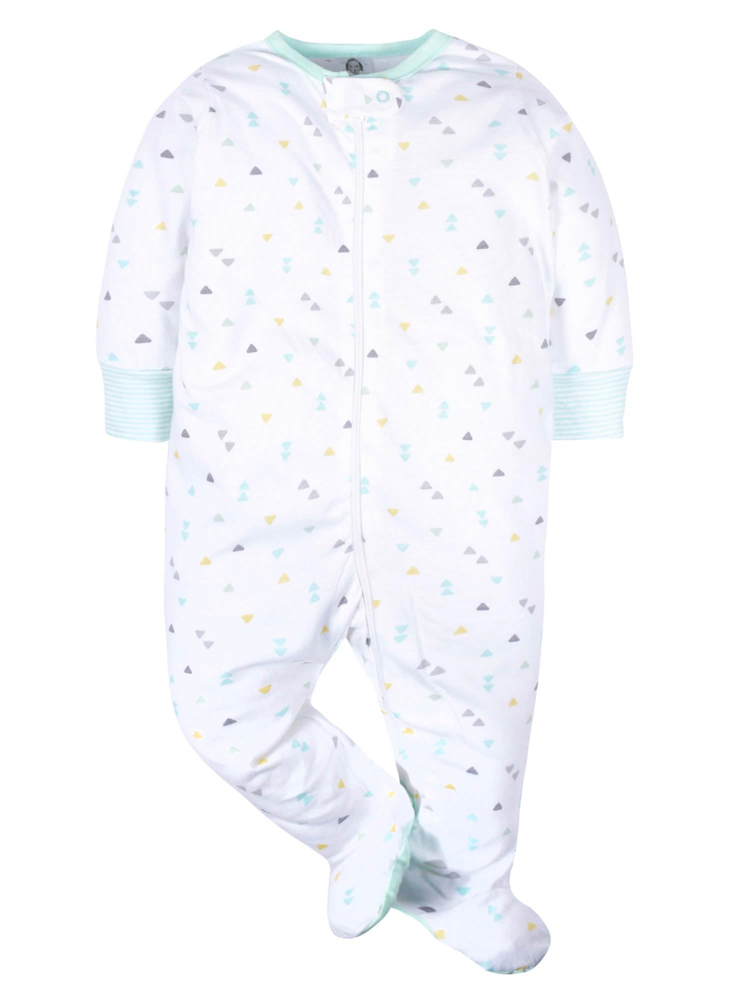 - Q: Do the footies have zippers for easy diaper changes? A: Yes, each Gerber Sleep 'N Play features a front zipper with a safety tab, allowing for quick and easy diaper changes.