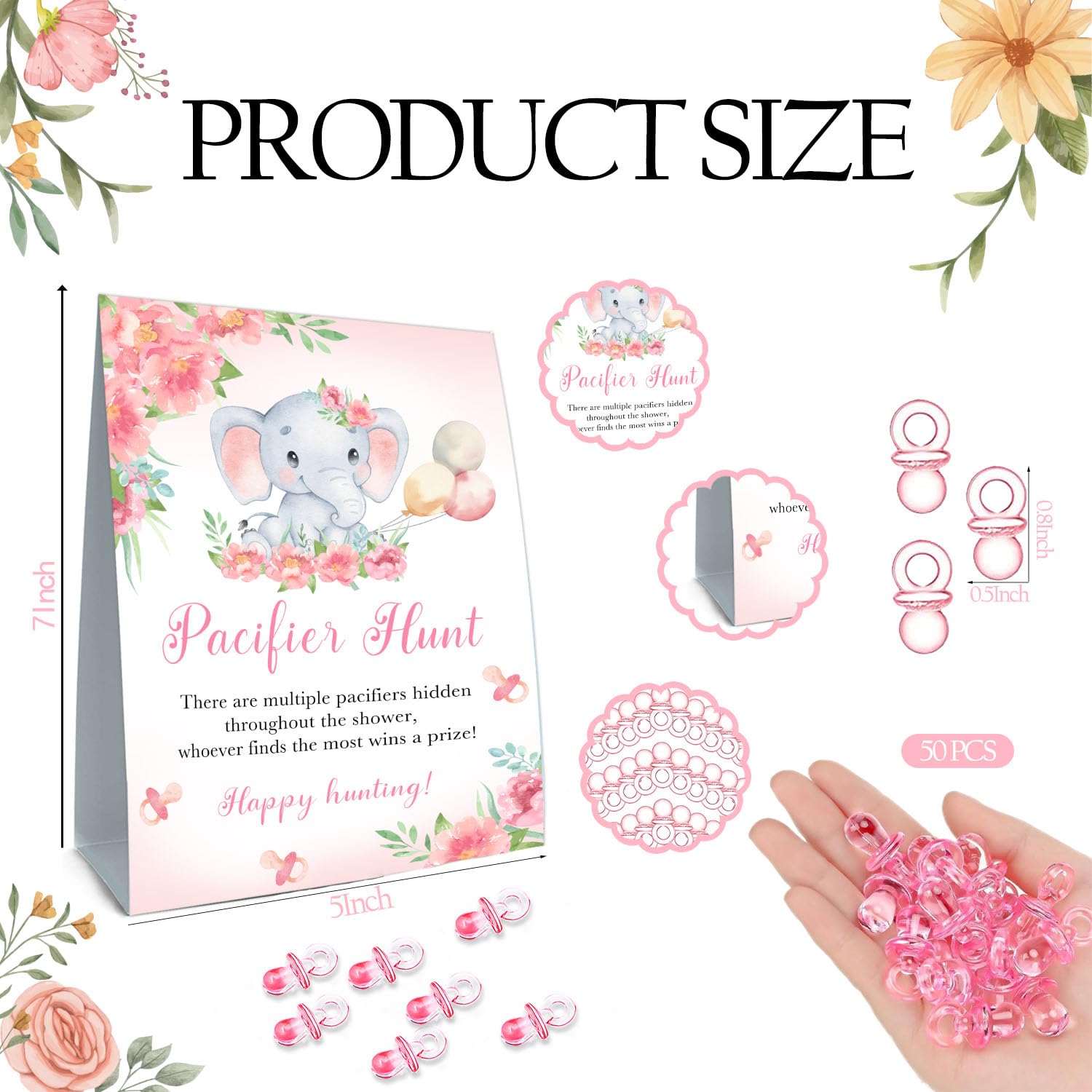 - Q: What is included in the Guawubiang Pacifier Hunt Sign set? A: The set includes a double-sided mini pacifier hunt sign measuring 5 by 7 inches and a pack of 50 pink mini pacifiers.