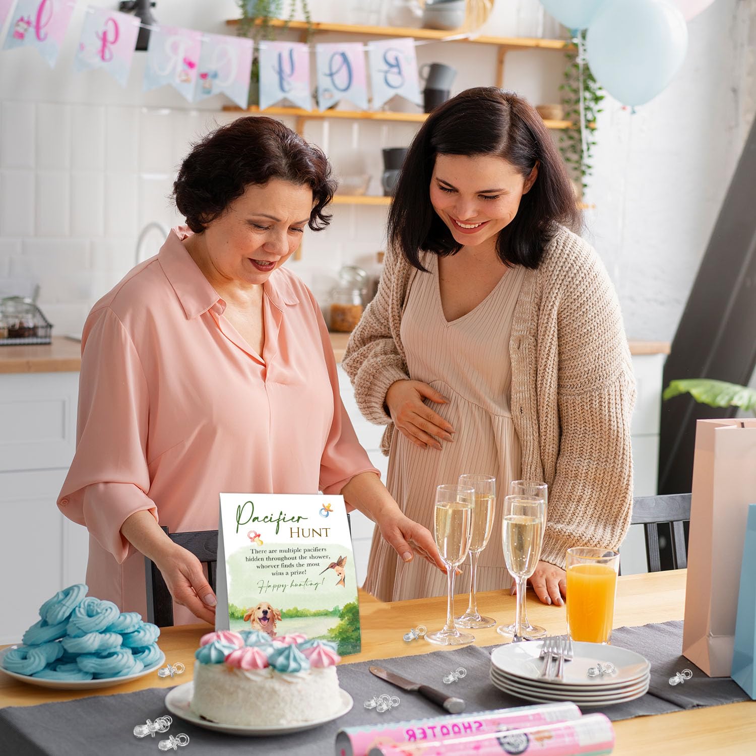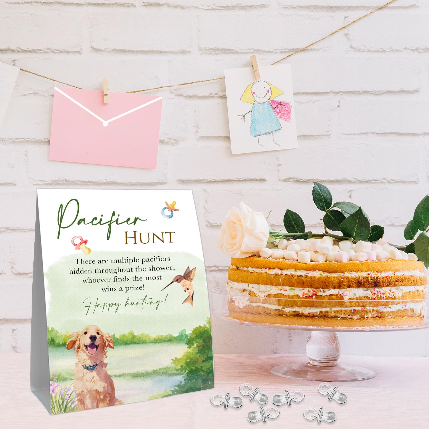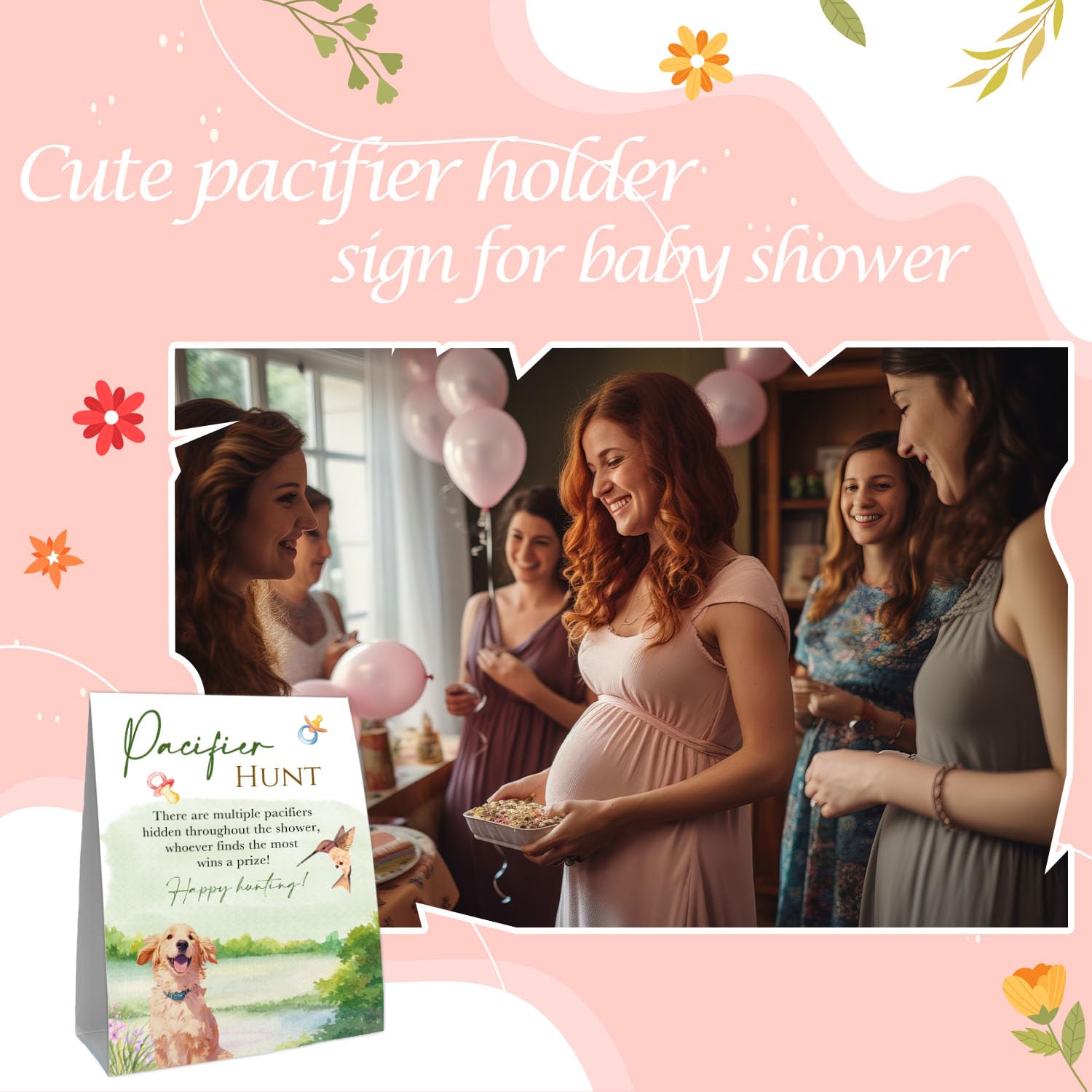 - Q: How do I set up the pacifier hunt game? A: Simply display the sign at the party and distribute the mini pacifiers for guests to find as part of the game.