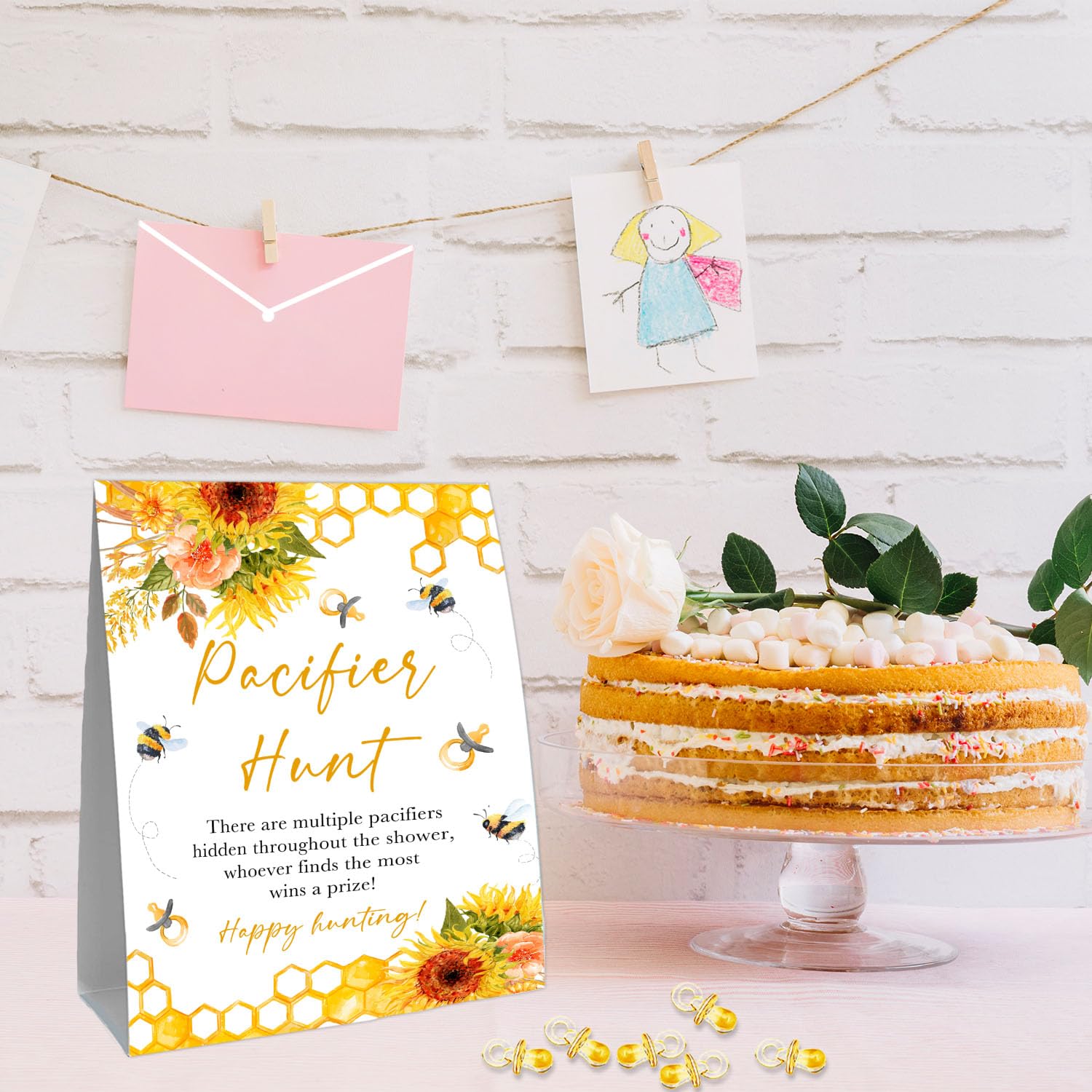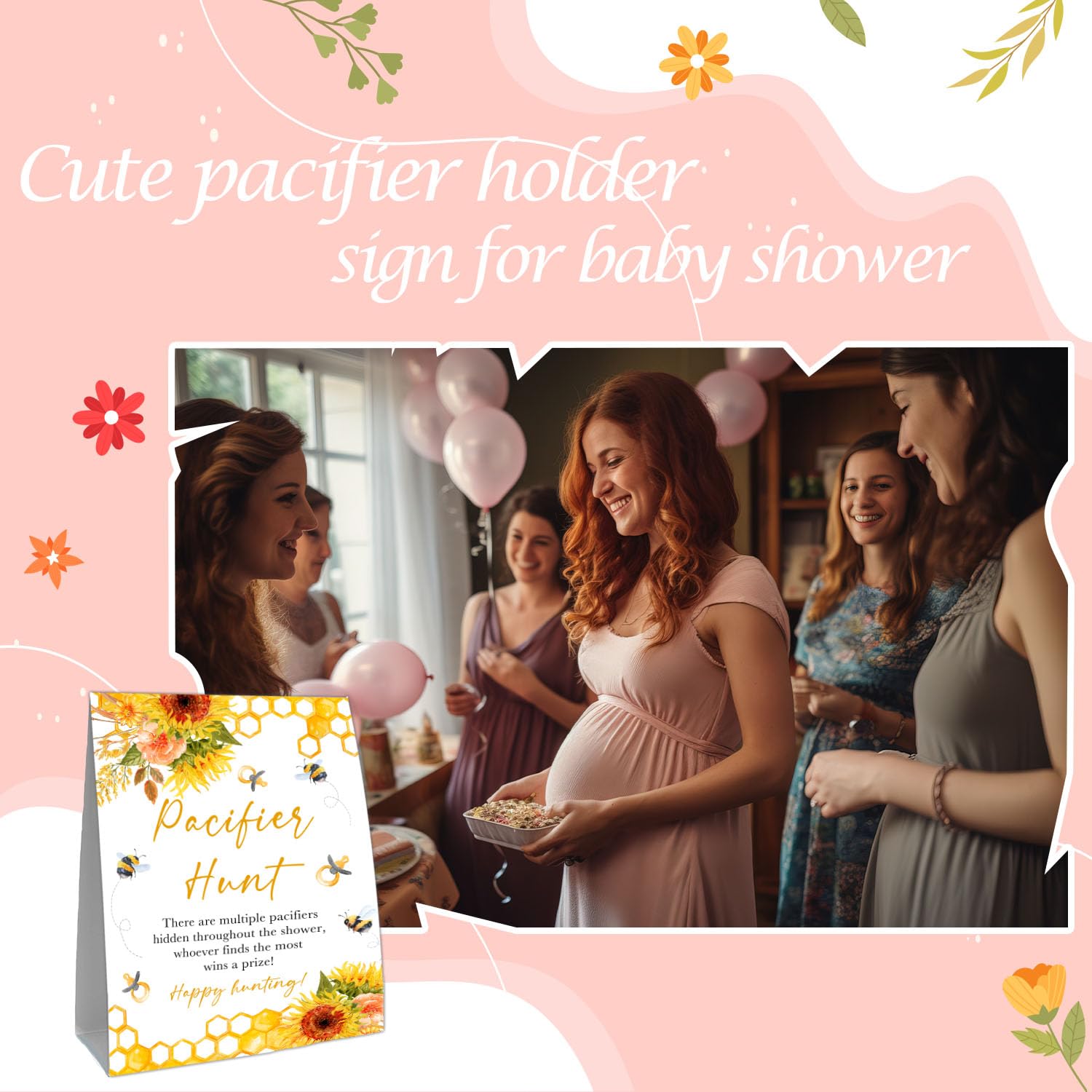 • Q: What is the purpose of the mini pacifiers in the game? A: The mini pacifiers are used as part of the Pacifier Hunt game, where guests search for them as a fun activity during the baby shower.