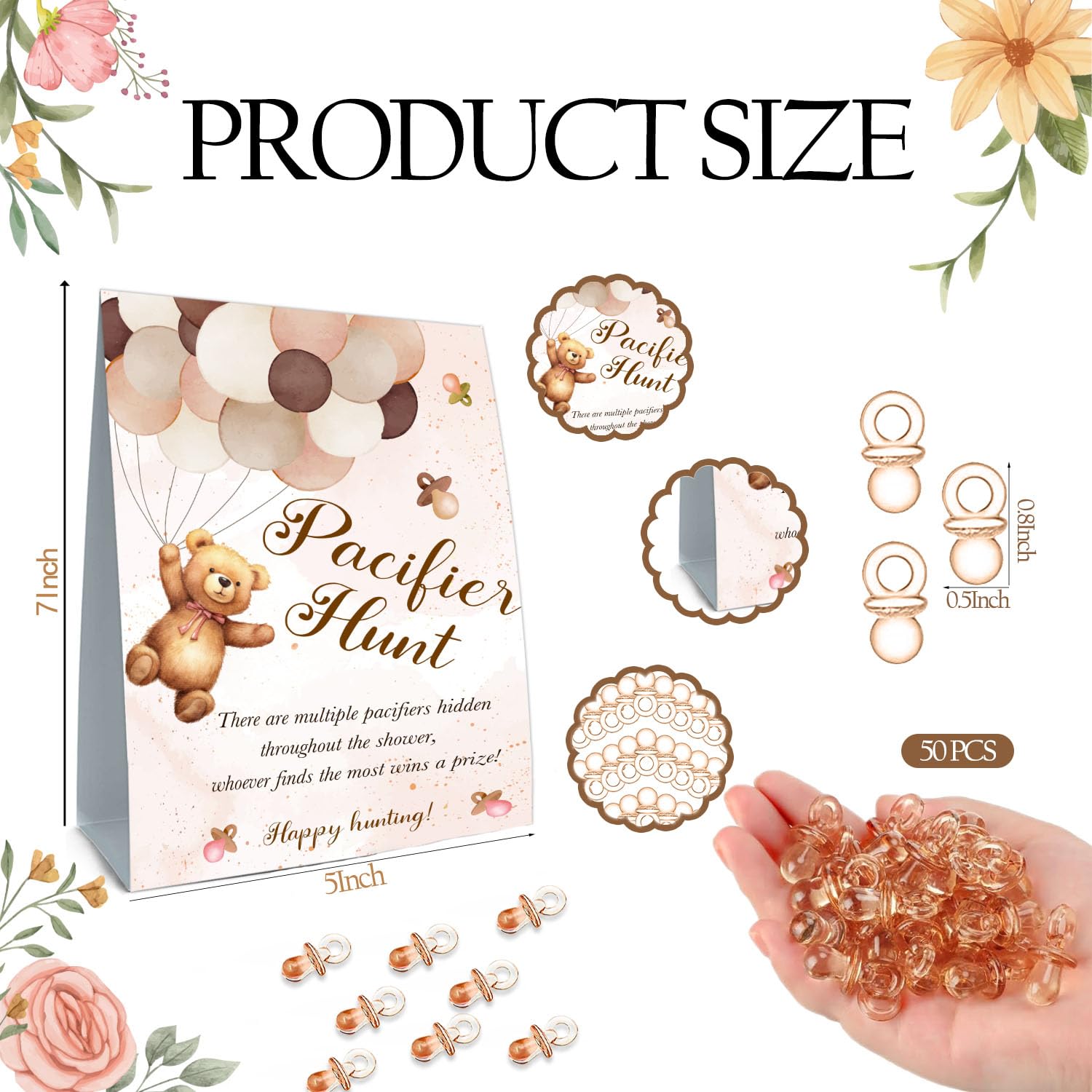 - Q: What is included in the Guawubiang Winnie Pacifier Hunt Sign set? A: The set includes a double-sided sign measuring 5 by 7 inches and a pack of 50 brown mini pacifiers.