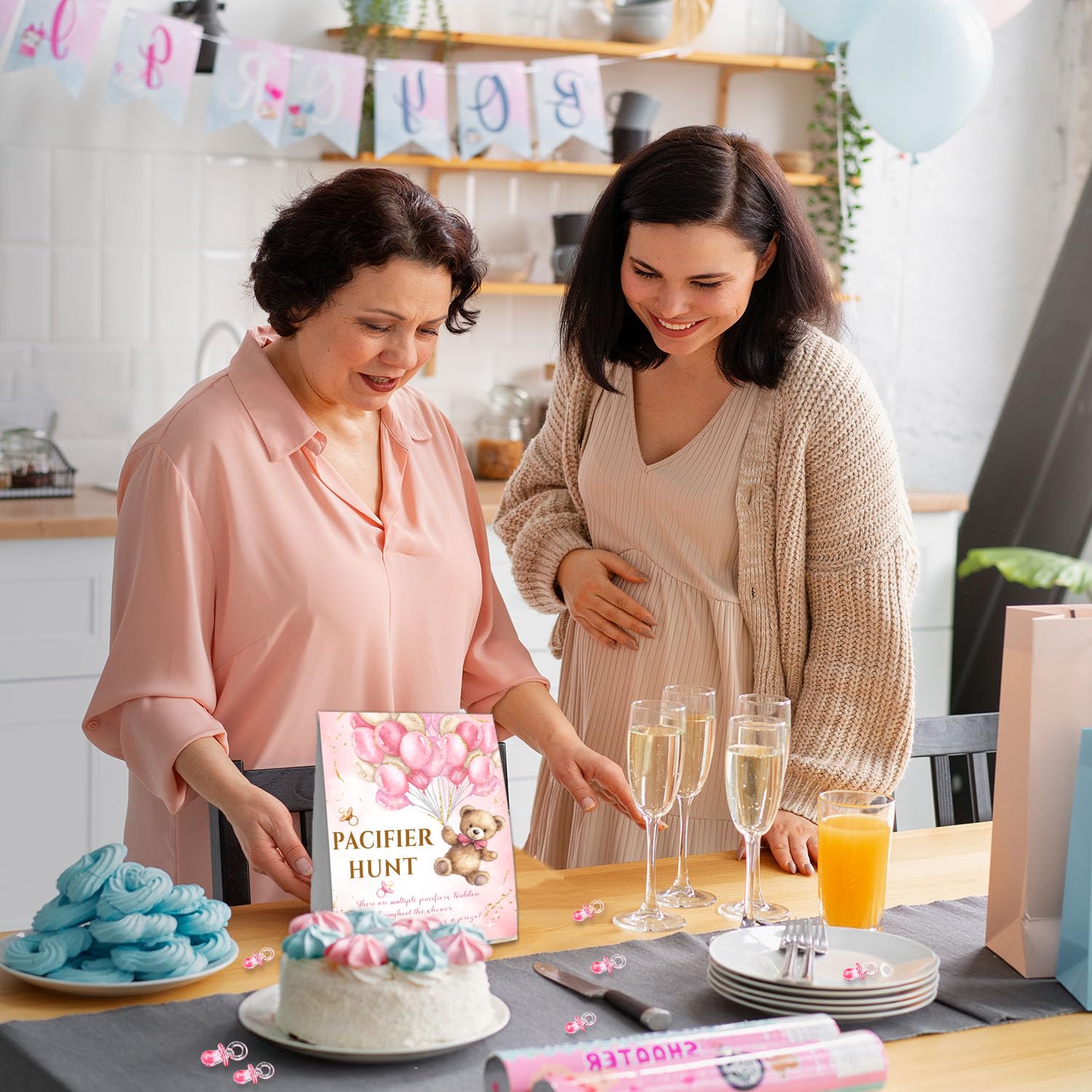 - Q: What is the purpose of the mini pacifiers included in the set? A: The mini pacifiers are used as part of the pacifier hunt game, adding fun and engagement for party guests.