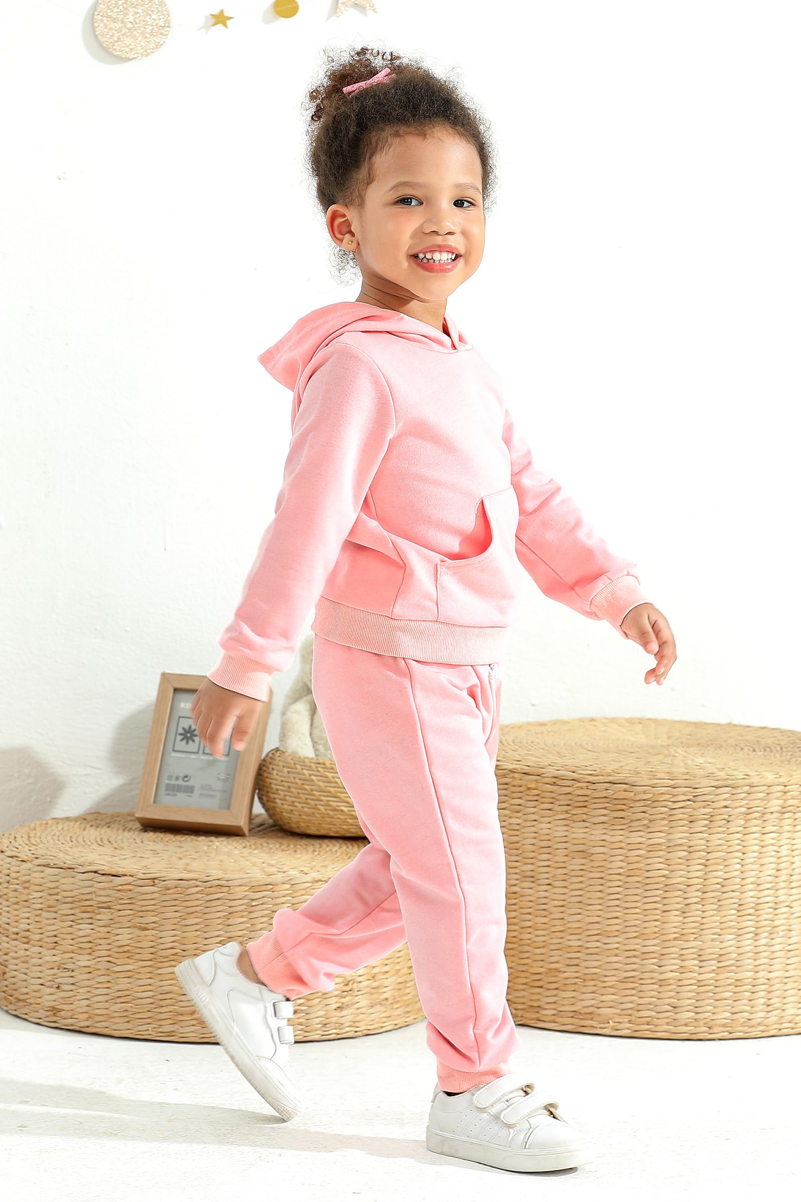- Q: Does the sweatsuit have any special design features? A: The outfit features a hooded top with a pocket and elasticized waist sweatpants, providing comfort and safety for your child.
