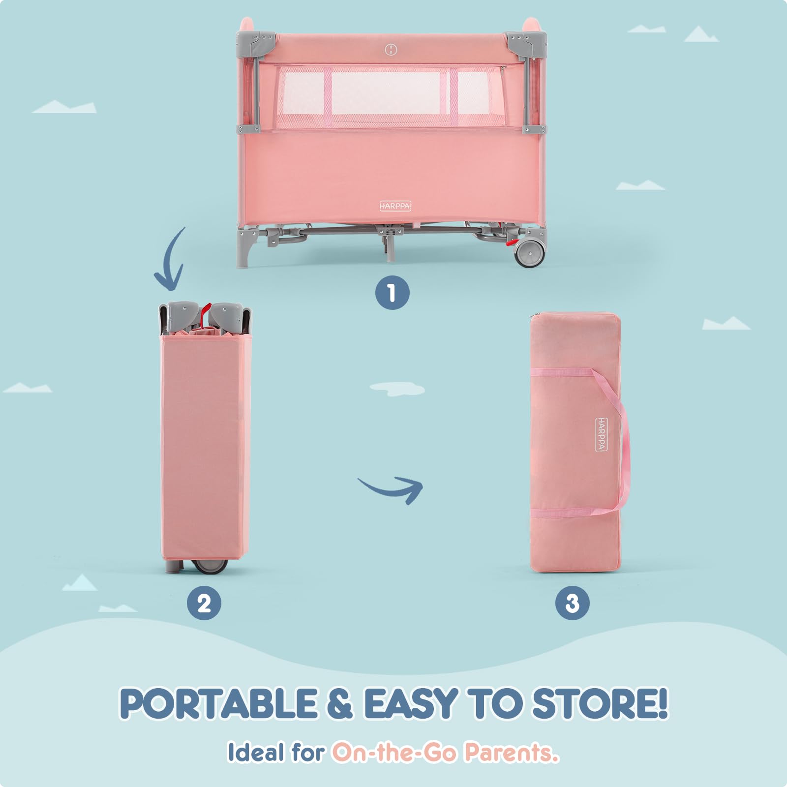 - Q: Is the HARPPA Pack and Play easy to transport? A: Yes, the HARPPA Pack and Play comes with a carrying bag, making it easy to transport for travel or visits.