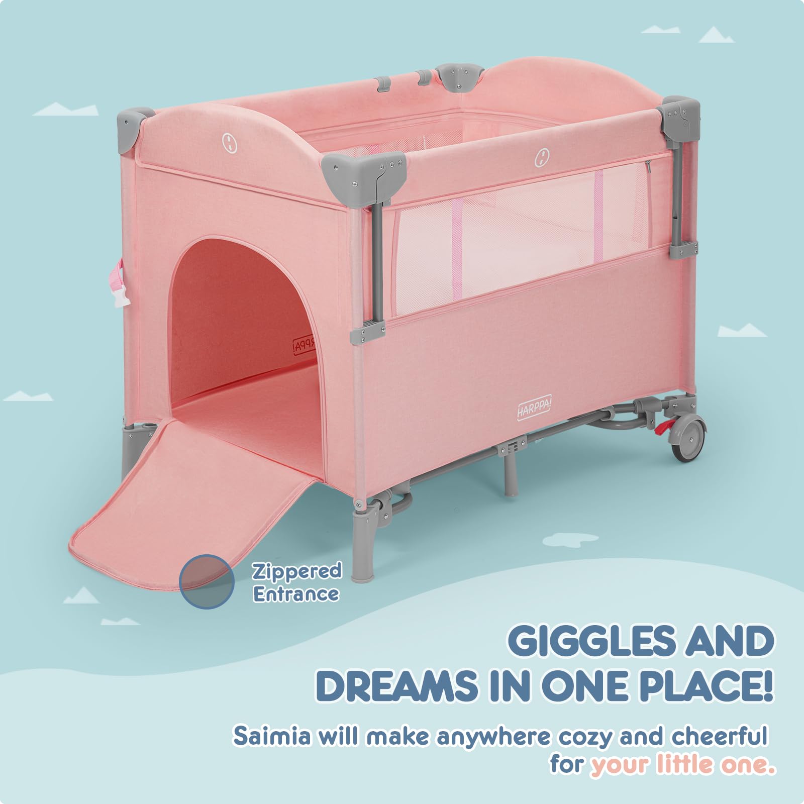 - Q: What features does the HARPPA Pack and Play offer for activities? A: The HARPPA Pack and Play can transform into a stimulating activity center, ideal for playtime.