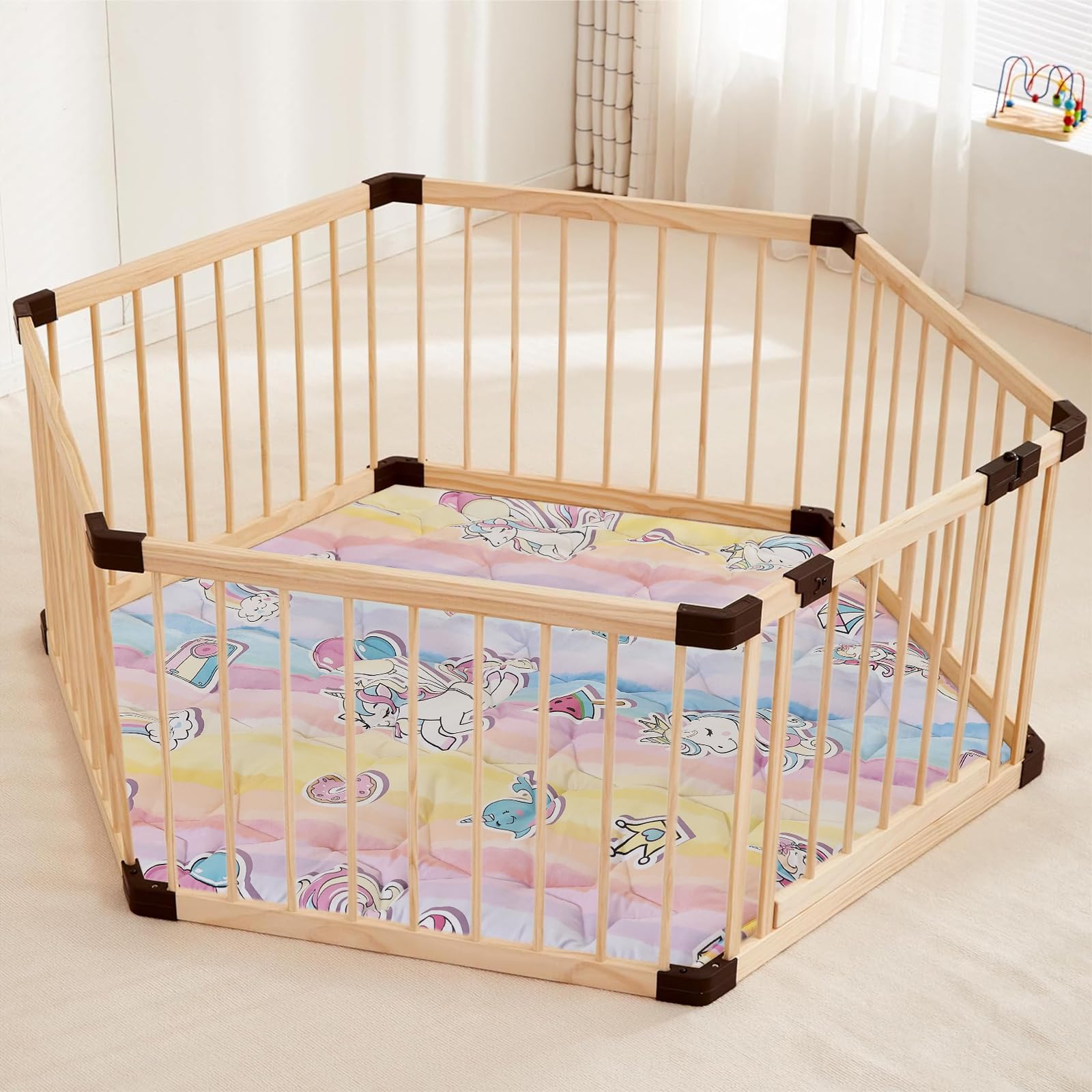 - Q: What are the dimensions of the Hexagon Baby Play Mat? A: The Hexagon Baby Play Mat measures 51 inches by 59 inches, providing ample space for your baby to play and explore.