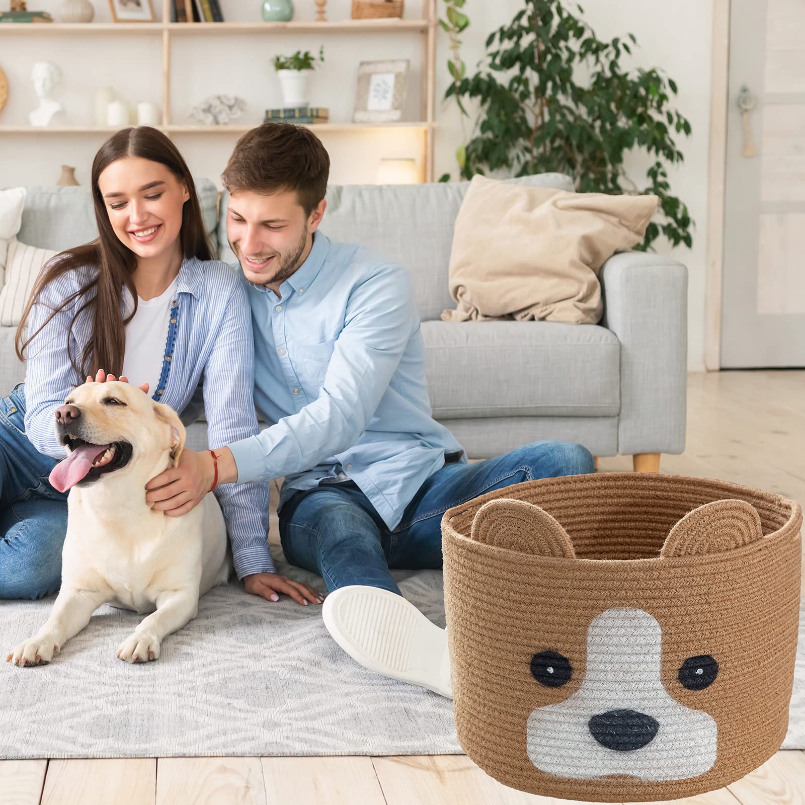 - Q: What colors are available for this basket? A: The HomeyPine Dog shaped Basket comes in five colors: Khaki, Jute, Dark Grey, Light Grey, and White.