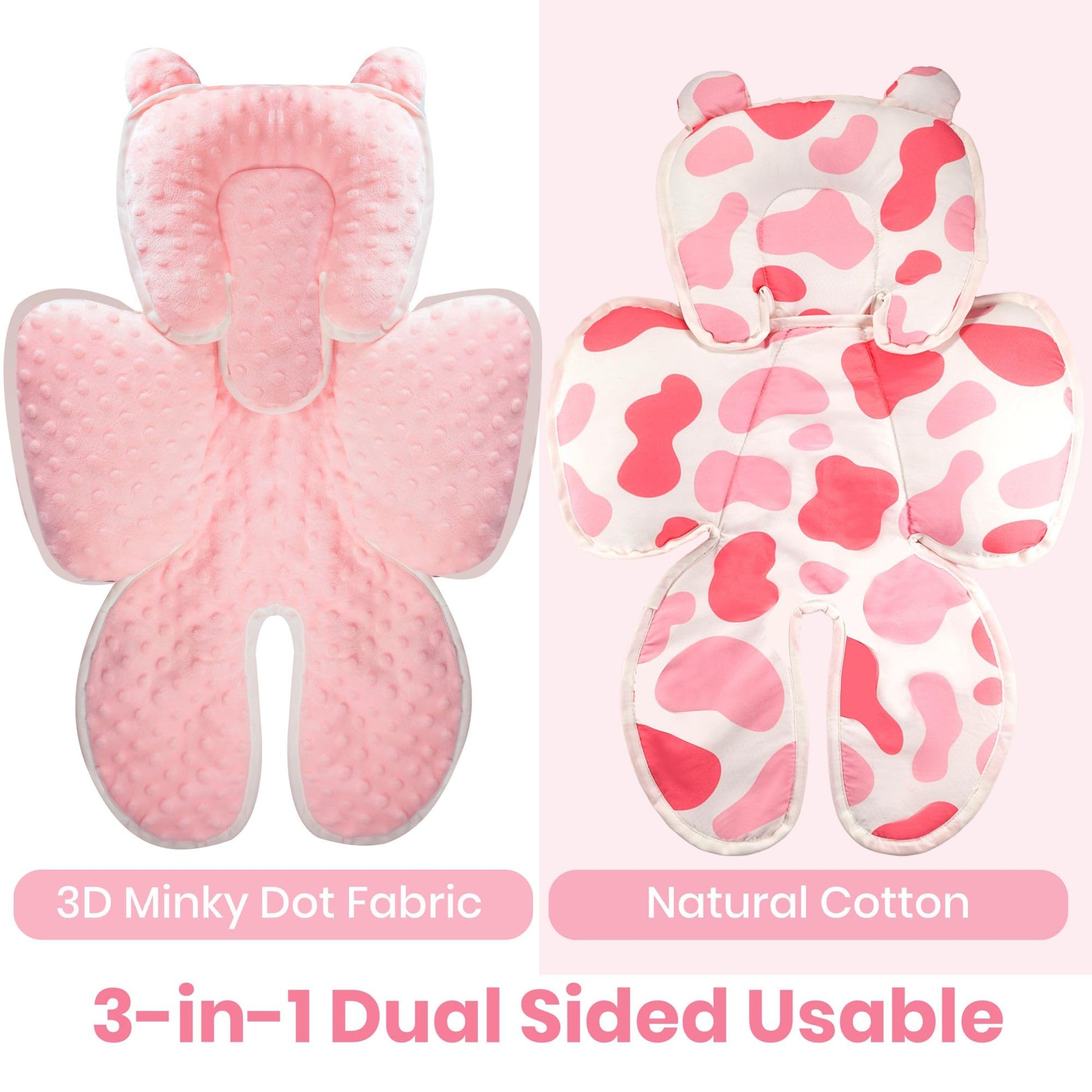 - Q: Does this product come in different colors or patterns? A: Yes, the Honeau car seat insert is available in various colors and patterns, including a cute pink cow design. Please check the product listing for current options.