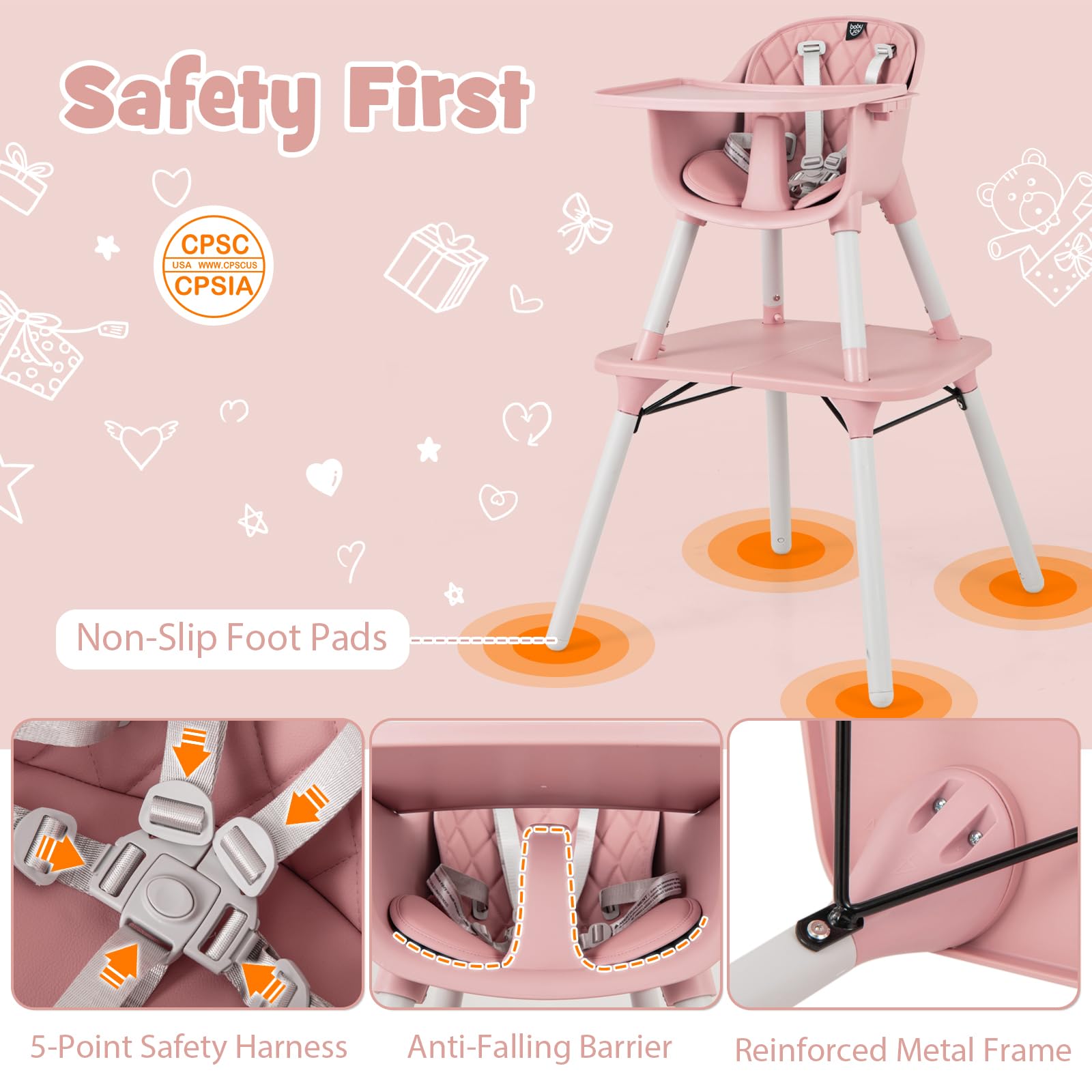 - Q: What color options are available for this high chair? A: The HONEY JOY High Chair is available in a pink color option.