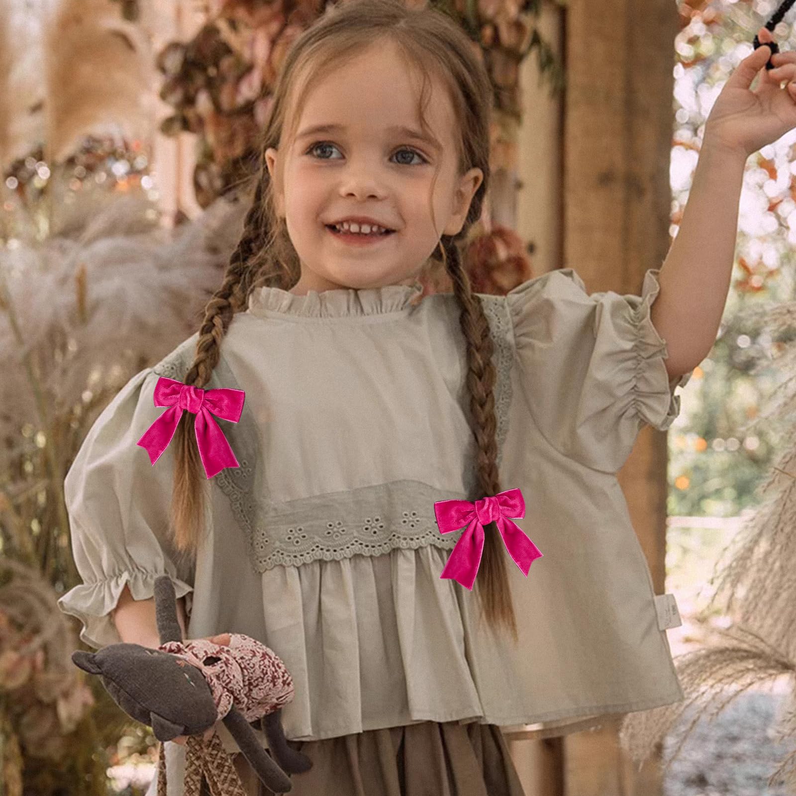 - Q: How do I care for the velvet hair bows? A: To care for the velvet hair bows, gently clean them with a damp cloth and avoid exposing them to excessive moisture to maintain their quality.