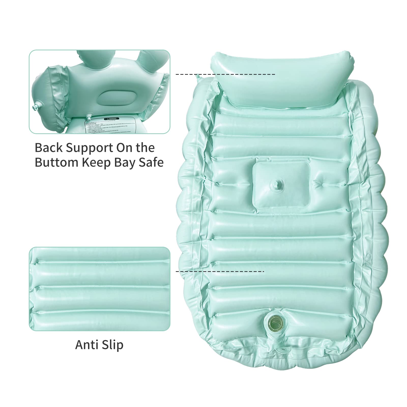 - Q: What safety features does the bathtub have? A: The bathtub features a non-slip design with a textured bottom to prevent slipping, along with a comfortable backrest for your baby.