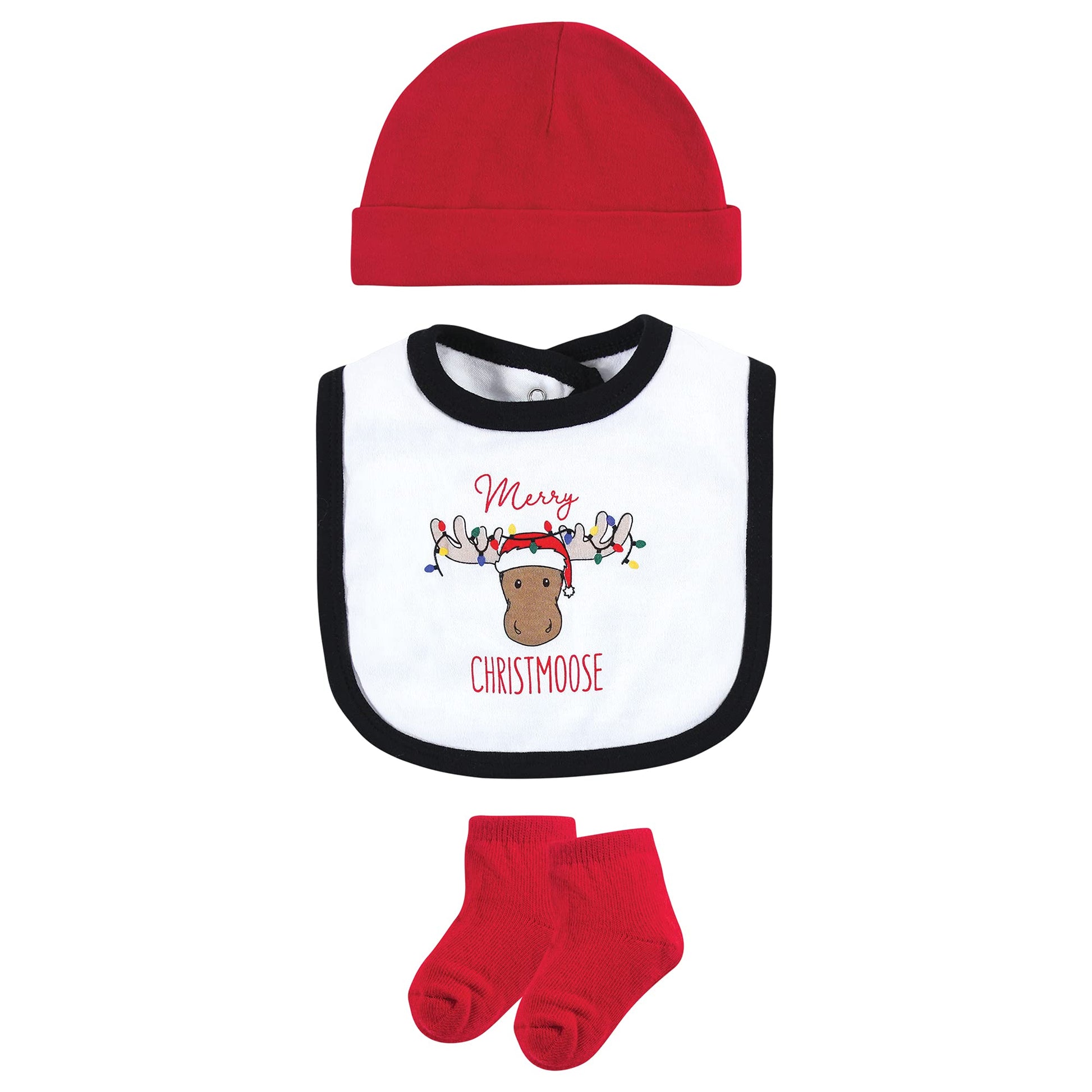- Q: What is included in the Hudson Baby layette set? A: The Hudson Baby layette set includes 2 bodysuits, 1 pair of pants, 1 bib, 1 pair of socks, and 1 cotton cap.