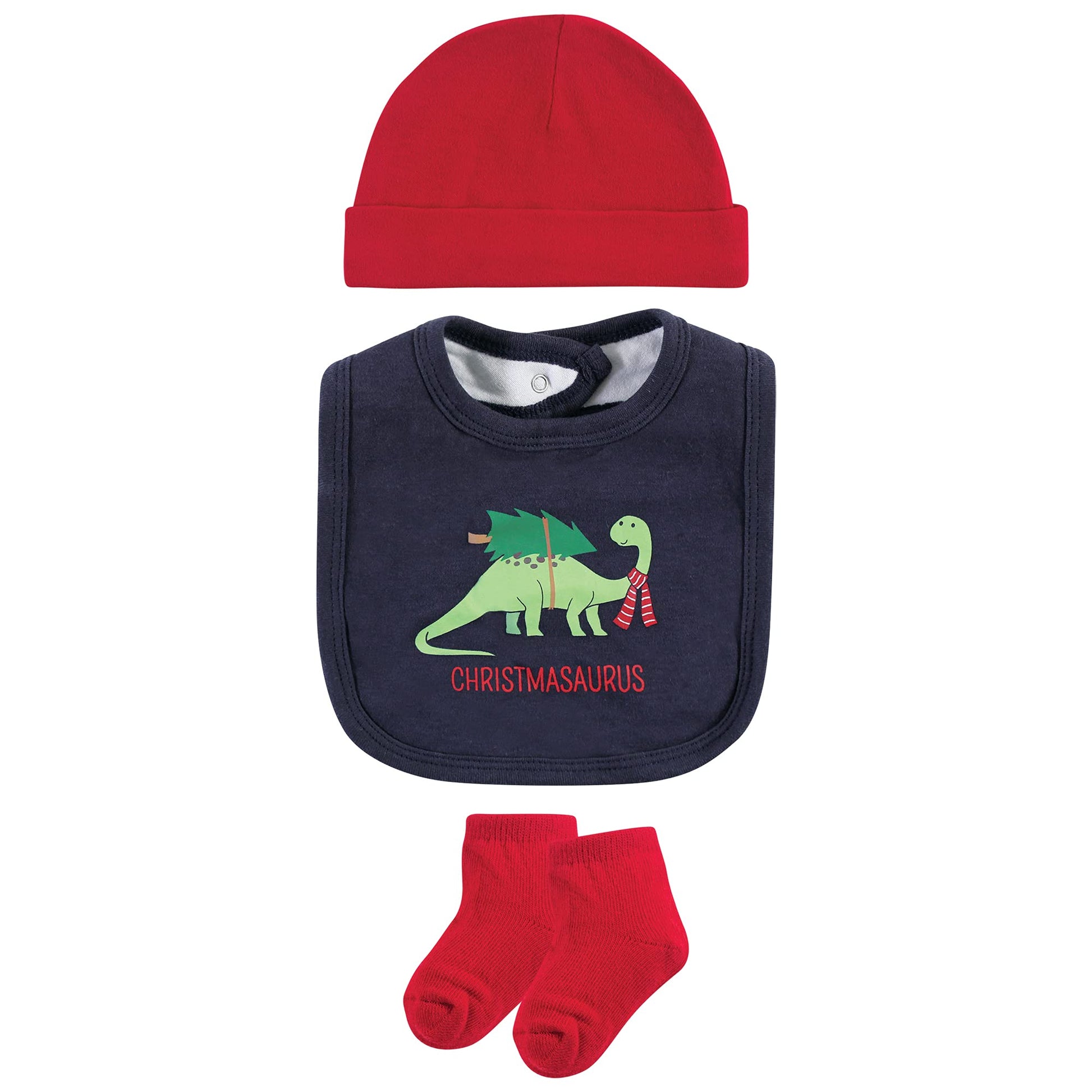 - Q: Does the layette set come in different designs or colors? A: The Hudson Baby Cotton Layette Set is available in various designs and colors, including the festive Christmasaurus theme.