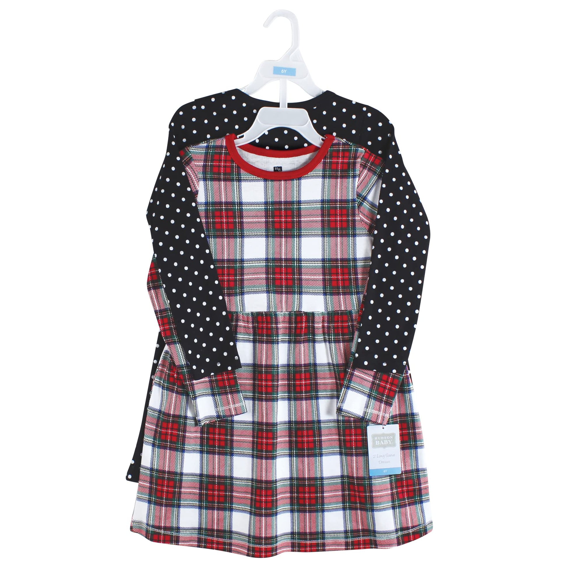 • Q: What is the design of the Hudson Baby cotton dresses? A: The dresses feature a white tartan design, which is both fashionable and suitable for young girls.