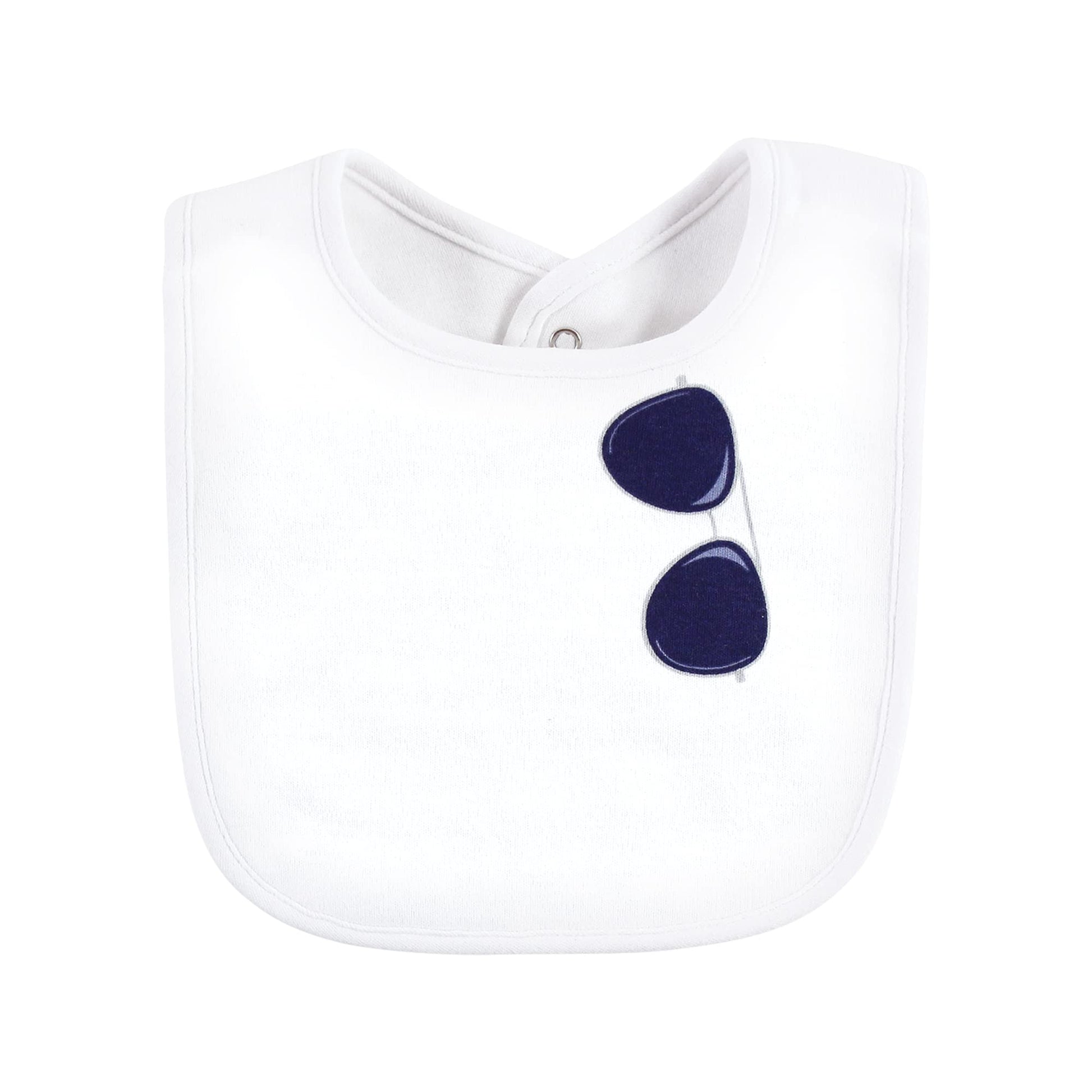 - Q: What is the size of these bibs? A: The Hudson Baby Cotton Bibs come in a one-size-fits-all design, making them suitable for most babies.