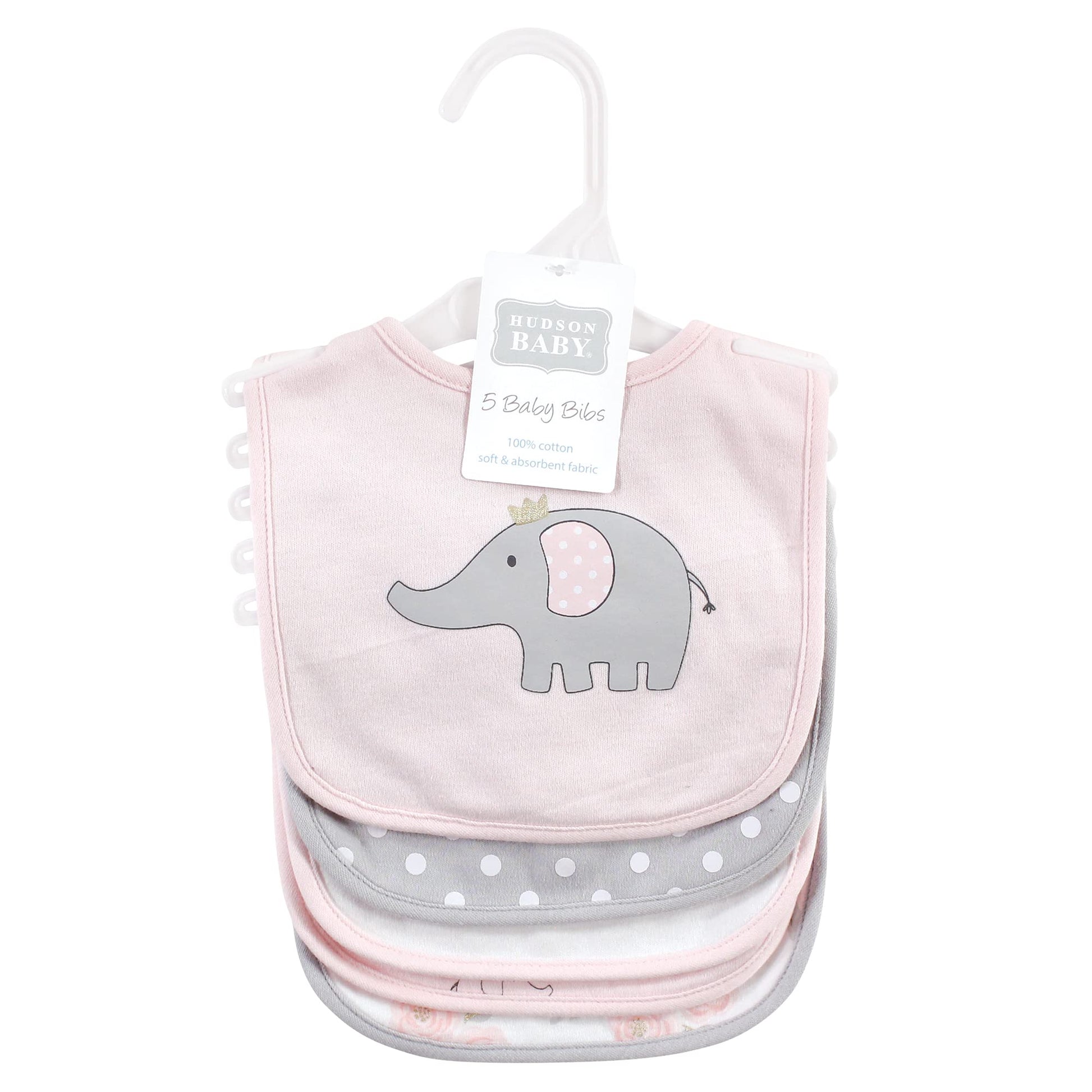 - Q: Do these bibs come in multiple colors or designs? A: This specific listing features a pink and gray elephant design, but Hudson Baby offers a variety of colors and patterns in their bib collection.