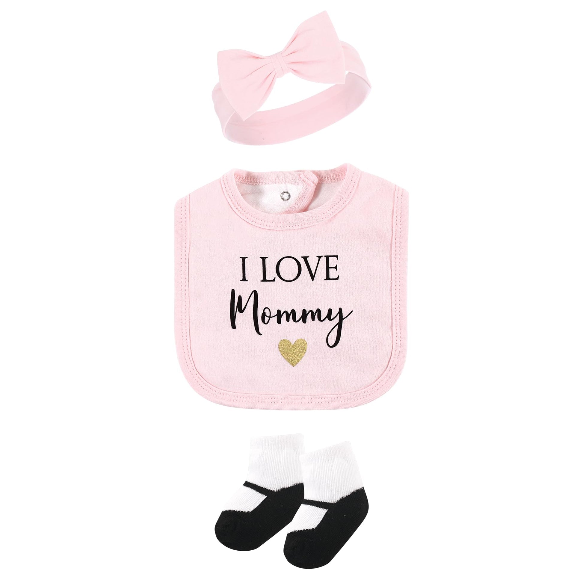 - Q: What materials are used in the bib and socks? A: The bib is made of a cotton blend to help catch drools and spills, while the socks are also made of a cotton blend to stretch with the baby's growing feet.