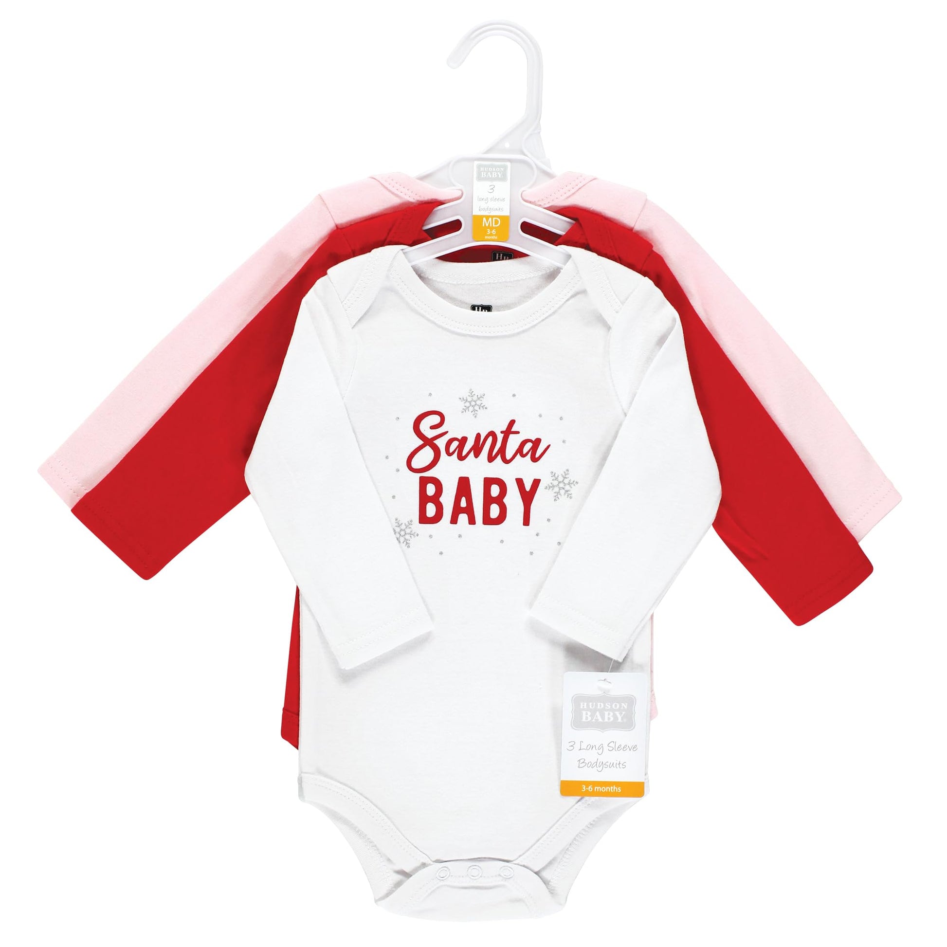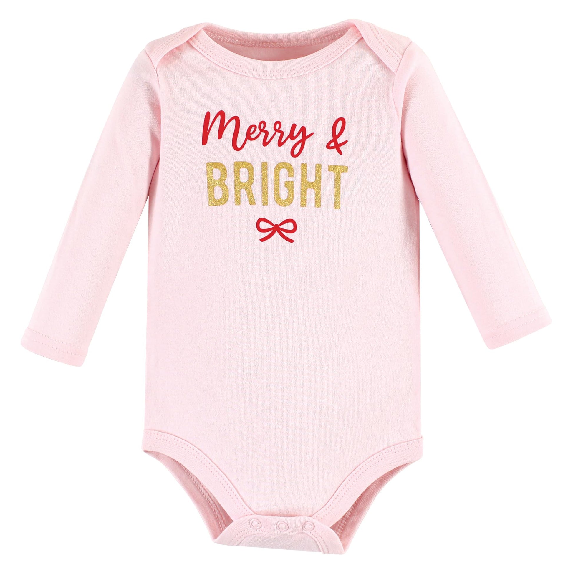 Hudson Baby Unisex Baby Cotton Long-Sleeve Bodysuits, Girl Christmas Sayings, 18-24 Months