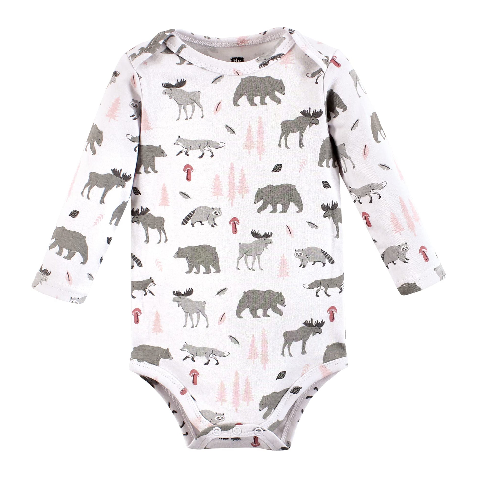 - Q: Do these bodysuits have any special features? A: The bodysuits feature adorable prints and designs, including woodland animals, adding a fun element to your baby's clothing.