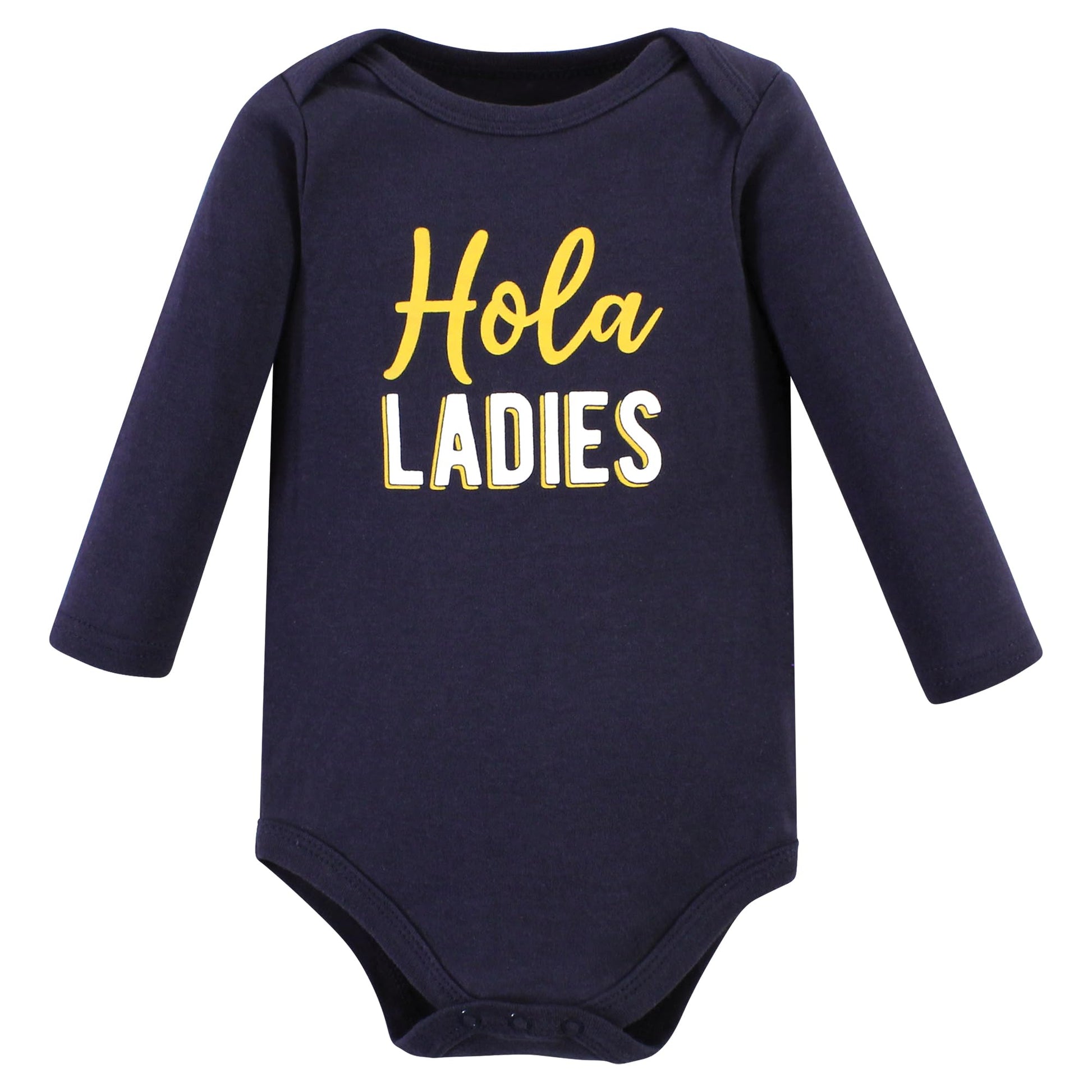 - Q: What is included in the Hudson Baby long-sleeve bodysuit pack? A: The Hudson Baby long-sleeve bodysuit pack includes five coordinating bodysuits featuring various prints and designs.
